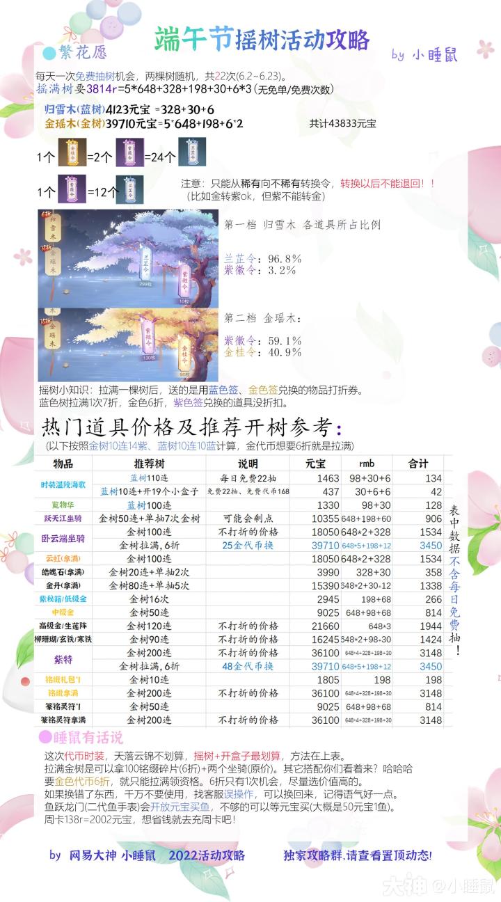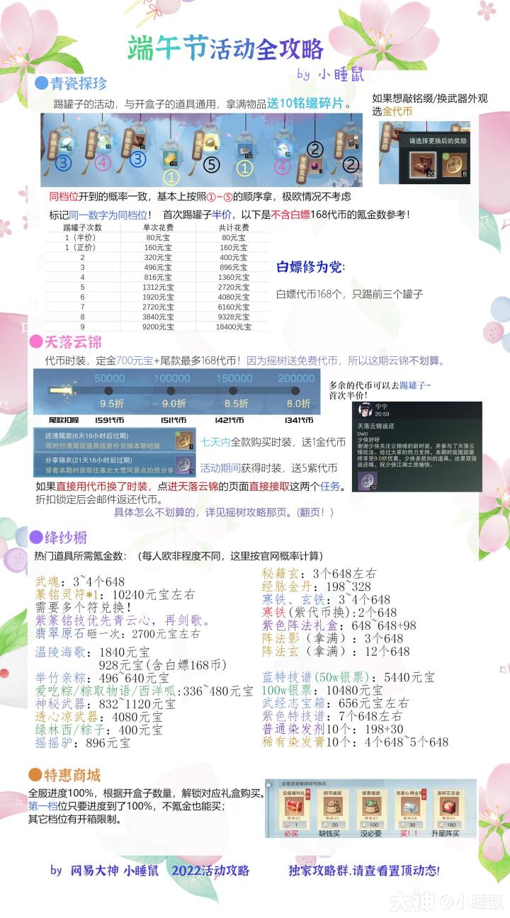 端午节活动攻略:繁华愿(摇树)、天落云锦(不划算)、绛纱橱 、青瓷探珍,代币套最划算拿法。——转载于小睡鼠