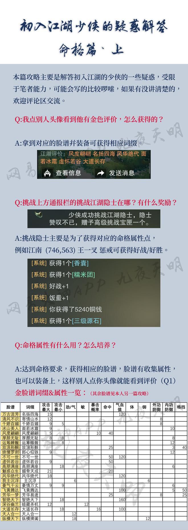 新手科普向·命格脸谱——转载于一梦江湖攻略小助手