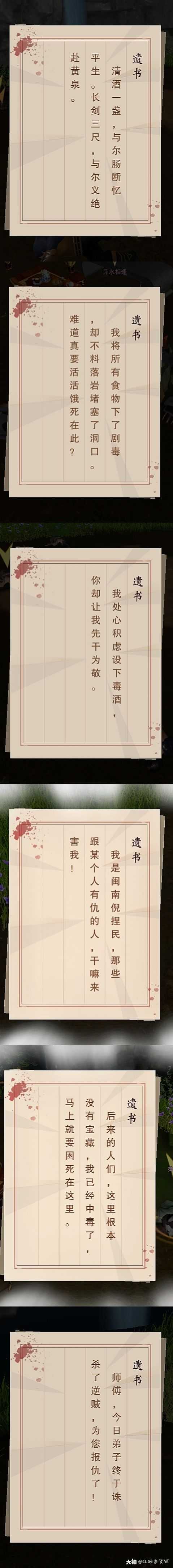 【我处心积虑备下毒酒,你却让我先干为敬?少侠快来看,你从未注意的遗书这么好玩。】——转载于江湖杂货铺