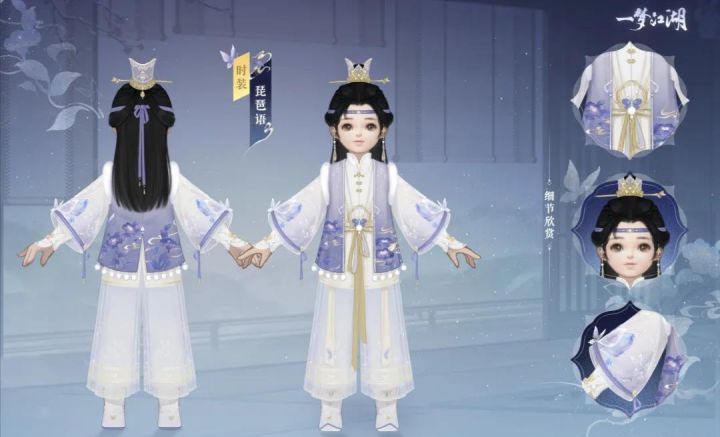 【酒馆告示张贴处——换季新时装抢先看】时装·琵琶语用鎏金配饰与淡紫锦缎,新颖清丽又不失温暖。——转载于嗷呜江湖酒馆