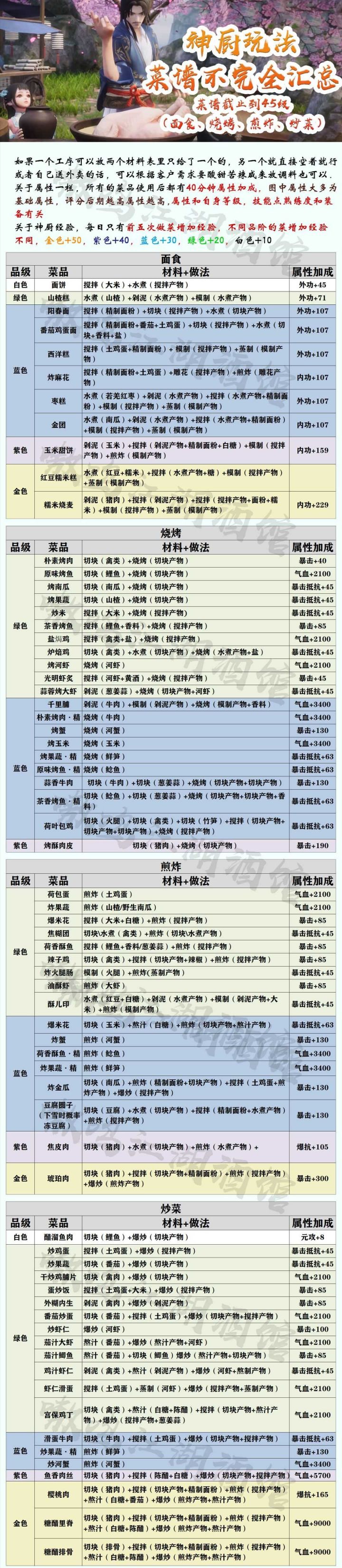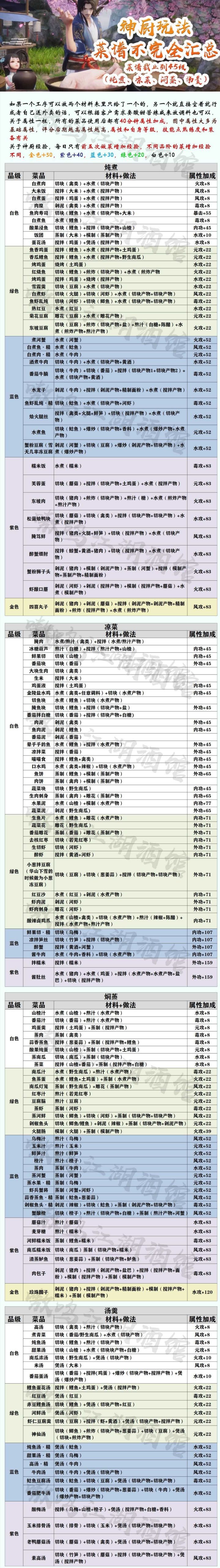 【神厨行当菜谱汇总 】——转载于嗷呜江湖酒馆
