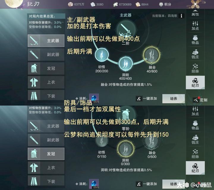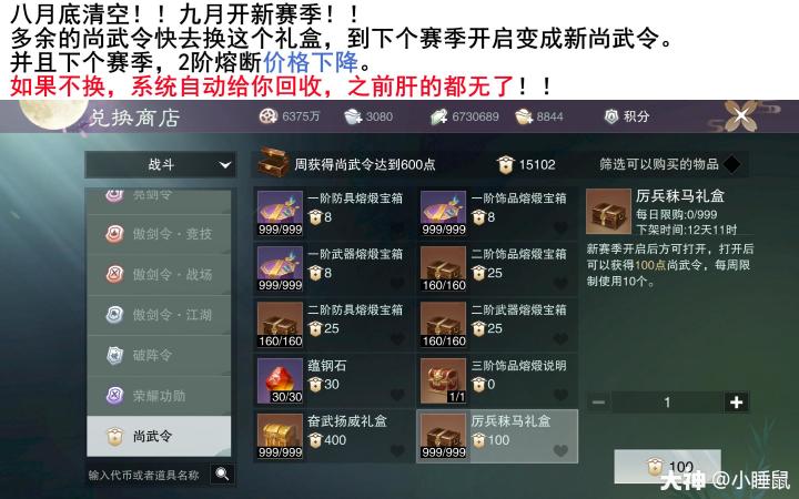 不看后悔!几个冷门修为党的小细节!图1,新阵法收集属性可以升级,加面板;图2装备纪刃相关建议;图3尚武令礼盒记得及时兑换,这个月结束!!图4不用的星阵也要强化唤醒,拿收集属性。——转载于小睡鼠