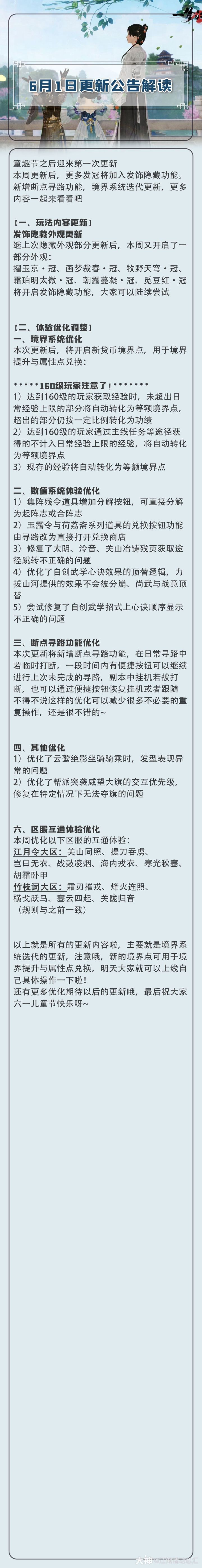 【6月1日更新公告解读:玩法内容更新 体验优化调整】——转载于网络