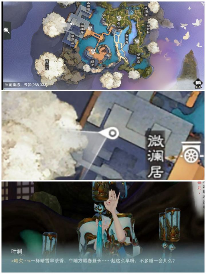 一梦江湖中的npc人物,可以送礼、互动来提升他们的好感度,并且有些npc还是触发奇遇的关建人物。那么这么多的npc,大家该怎样才能找到他们呢,他们的坐标位置又在哪,下面就先来看看云梦npc的位置吧!叶澜:云梦微澜居(268,333)柳明望:云梦观梦台(733,527)来去祖师:云梦观梦台(799,531)丁乘风,徐春兰:西域玉门镇(1469,3013)以上的具体位置小伙伴们找到了嘛?大家