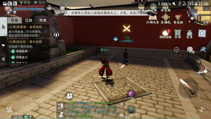一开始的新手任务一定先做完点开右上角的活动,活动界面中,左上角可以看到,活动得来的经验每日限制,前期需要的经验值很少,限制又大,到了后期每日的活动经验满足不了升一级副本:过副本可以获得大量经验,以及很多珍贵锤锻,(锤锻从摆摊买很贵,建议过副本获得)每个副本每日限三次奖励,因为过副本时间较长,可以把它悬赏出去 (๑•̀㉨•́ฅ✧ (下图的江湖纪事就是副本)锻心:这个是属于门派任务,分三种(还