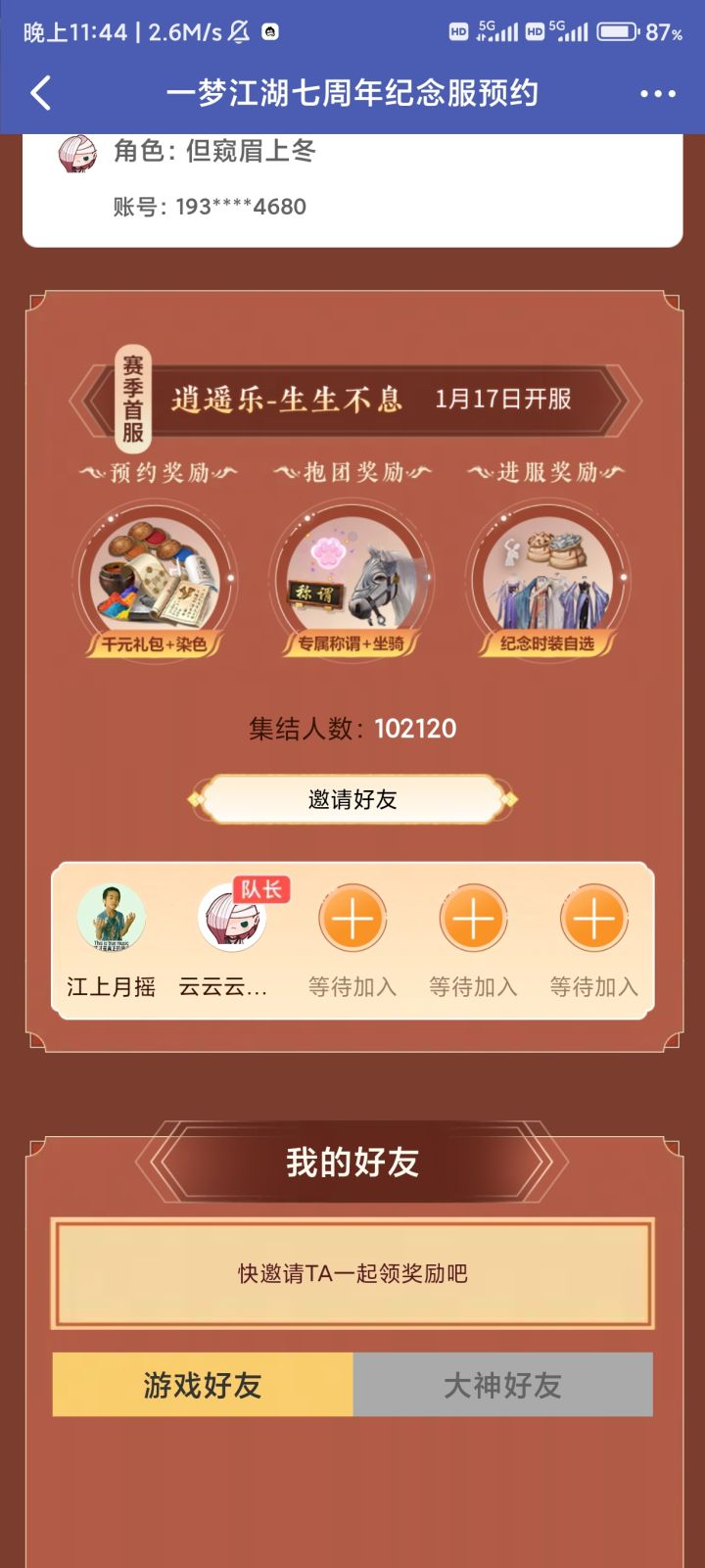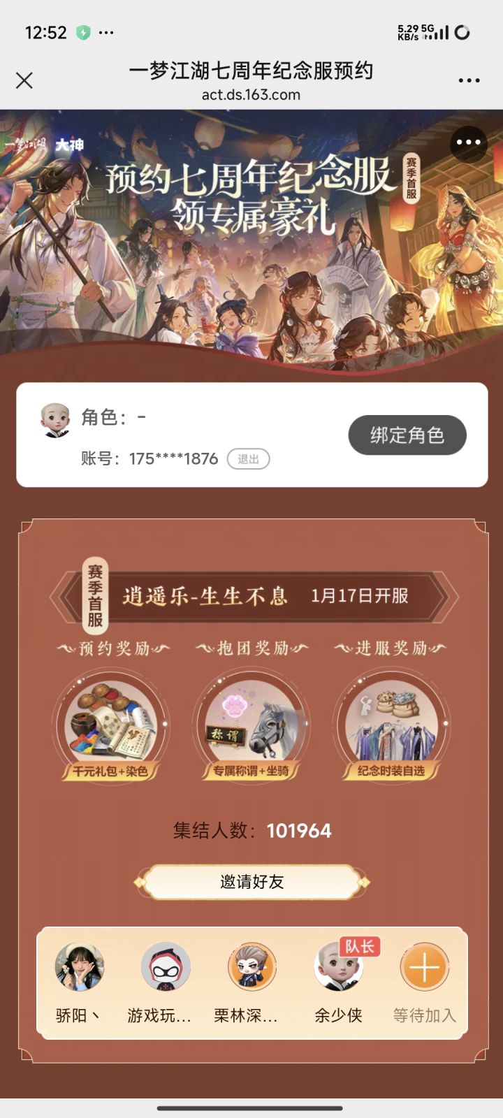 赛季首服预约组队拿奖励来,差三人