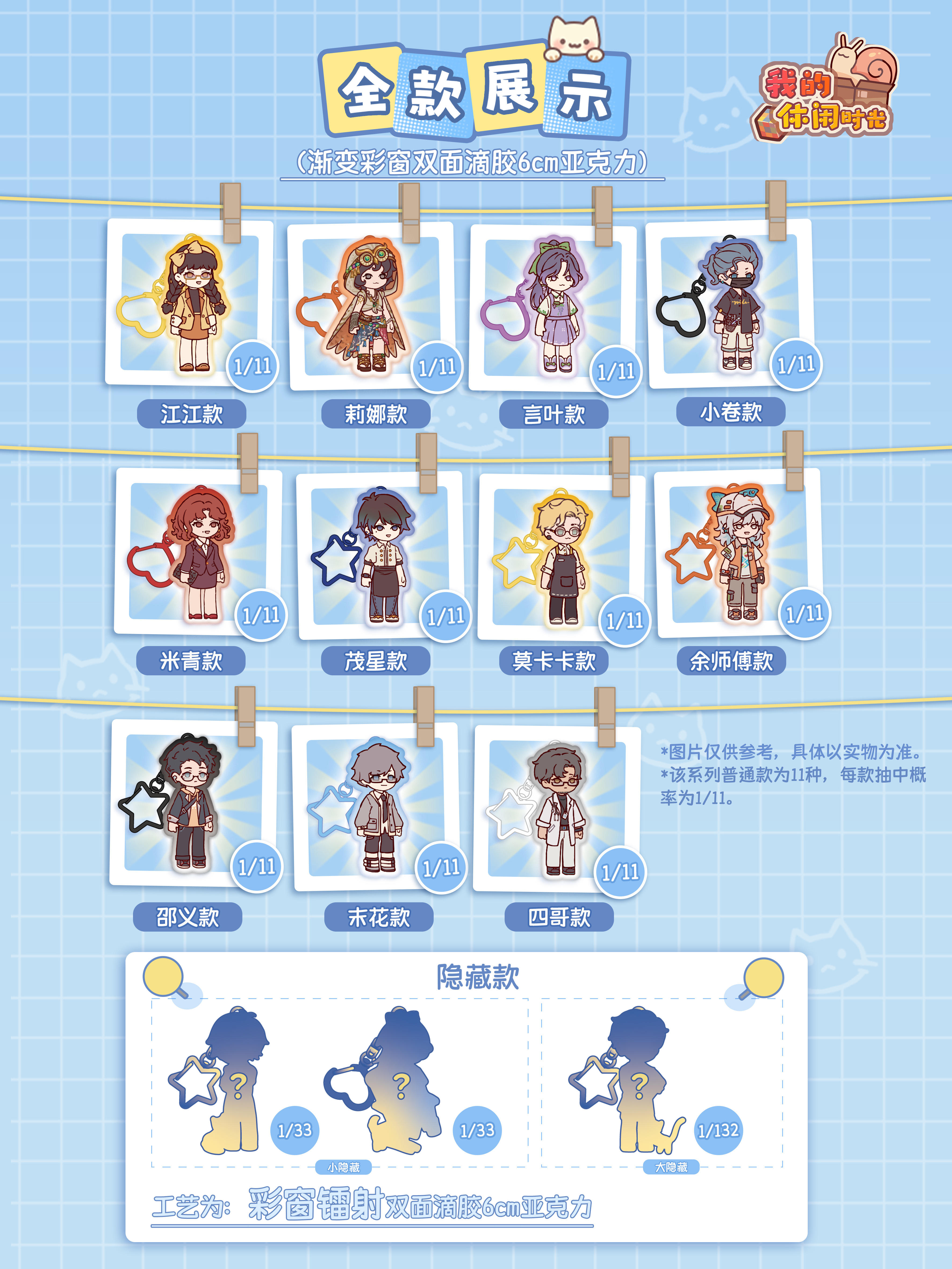 亲爱的小蜗们~双十一周边狂欢活动今日开启!🎉两款超可爱周边新品+超值活动,说什么也不能错过!快来和居居一起抄作业吧!📣 🆕 两款新品,萌度超标!🔸 「悠悠镇居民系列钥匙扣挂件盲袋」▫️ 常规款渐变彩窗+双面滴胶,角色专属渐变色彩,光影晶莹流动~▫️ 隐藏款镭射彩窗+双面滴胶,BlingBling光彩闪烁,准备好手气快乐拆拆拆!▫️ 搭配彩色烤瓷挂扣,把悠悠镇的伙伴们挂在包包上,陪你到世