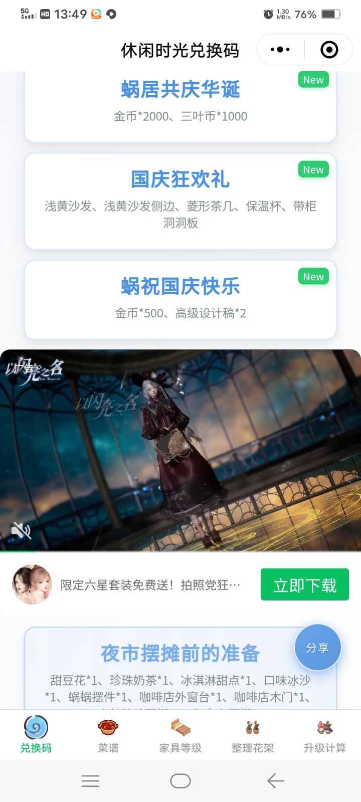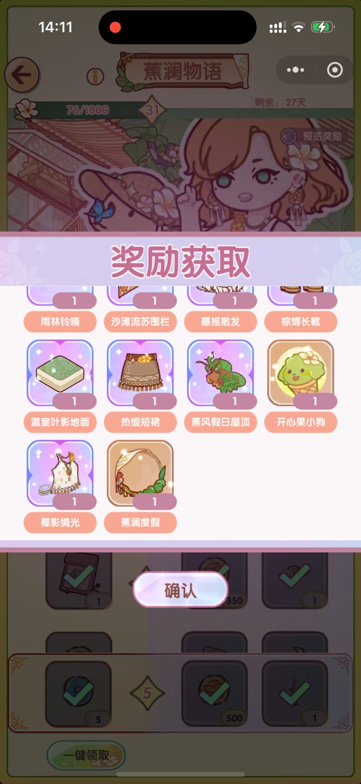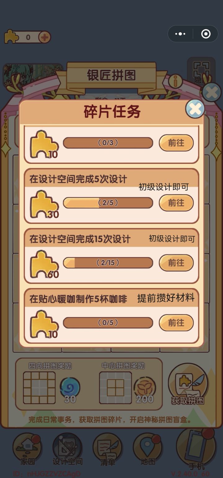 意外的很快就肝到了30级;到30级奖励总结:除常规服装、装修物品等,共计可获得6050金币、665蜗壳币、4150三叶币、19高级设计稿、4奇异种子、14初级设计稿、19营养液、34刷新券、13饲料包、34加速券、头像头像框各1;到60级奖励总结等我再肝两天补充~本期任务感觉比之前都要简单,比如收集咖啡素材、收集造型材料都比之前要求的要少了不少,加上有一些只要购买家具、种子、做几杯咖啡收几