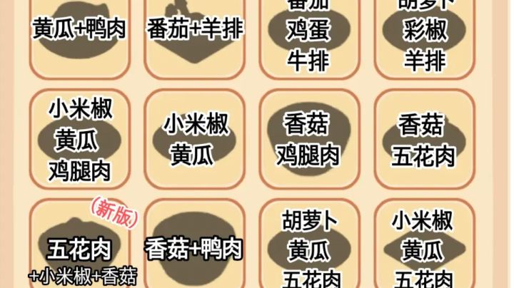 一、【菜谱】前排提醒:版本更新菜谱有所改动,如果发现需要材料和攻略不同,谨慎再次尝试。如果有玩家发现菜谱错误,及时帮忙指出,楼主会尽快改正。常见问题1:为什么我没有这个材料?因为还没解锁下一级菜谱,没有解锁该材料。(解锁新菜谱后,进货处可点击左右箭头切换肉类材料)常见问题2:为什么别人同样材料做出来了我做不出来?可能是不小心点错了材料没注意到,或者是游戏bug,因为最近收到很多玩家反馈(八