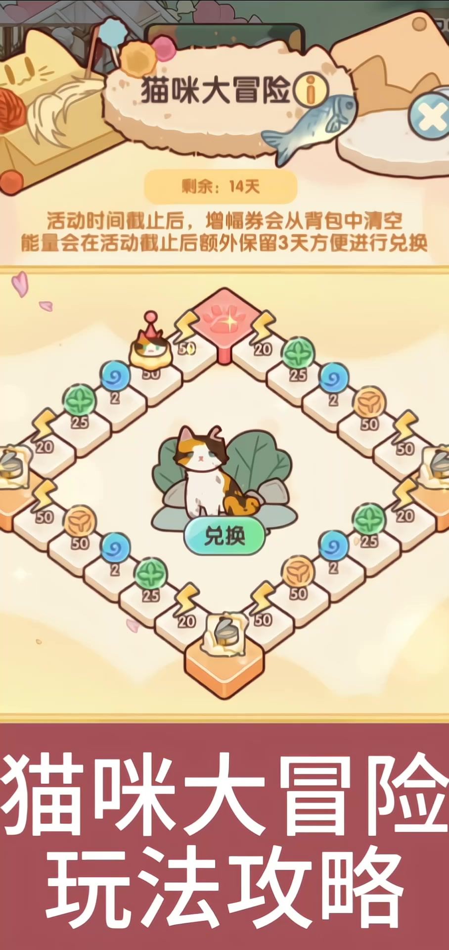 #我的休闲时光蜗居物语 #我的休闲时光 ♡『猫咪大冒险』零氪党很容易拿全家具的,不过拿全所需时间长一点。 ♡用好每天获得的10个骰子,看好到能量挑战的格子需要几步,用10倍增幅获得1000打底的能量。每天增幅券都有剩余,可以用来获得能量或者其他代币。