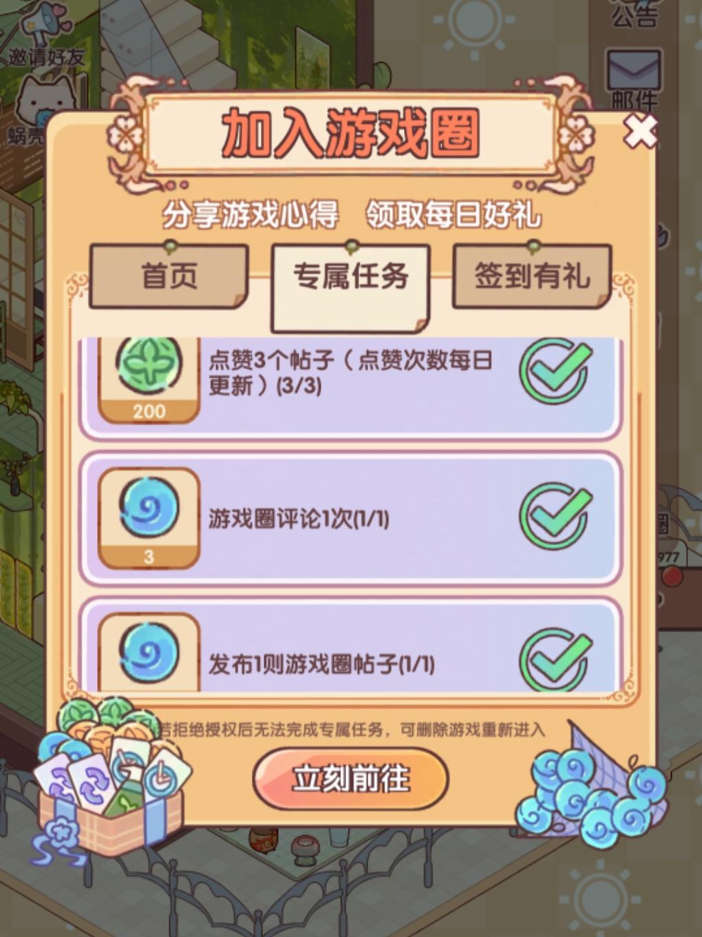 #我的休闲时光 #我的休闲时光创作官 🔍游戏圈注意:只适用于小程序的宝子们。🔍入口:小程序内游戏主页。🔍奖励:1.每日奖励:66三叶币➕加速券➕128金币。2.周六奖励:10蜗币➕扭蛋券。3.专属奖励:完成任务即可获得200三叶币➕13蜗币。