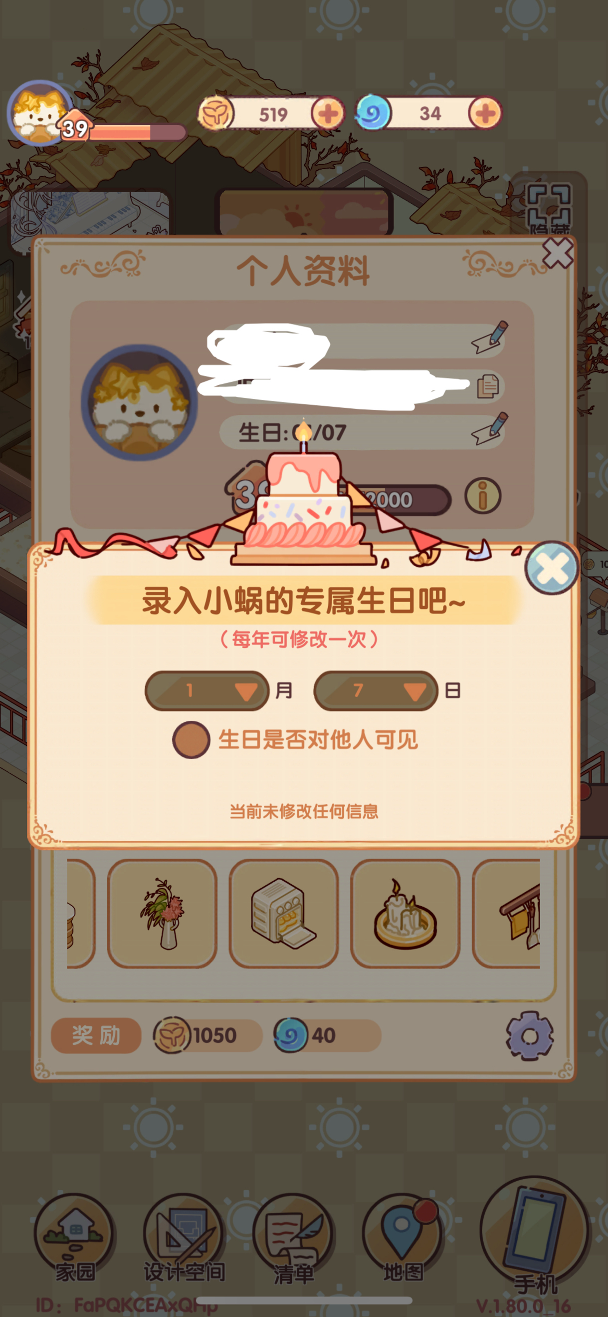 #游戏攻略 #我的休闲时光蜗居物语 把生日个人资料里面的生日换成当日的日期,就会重新得到居民的一份生日礼物斜眼笑微笑微笑