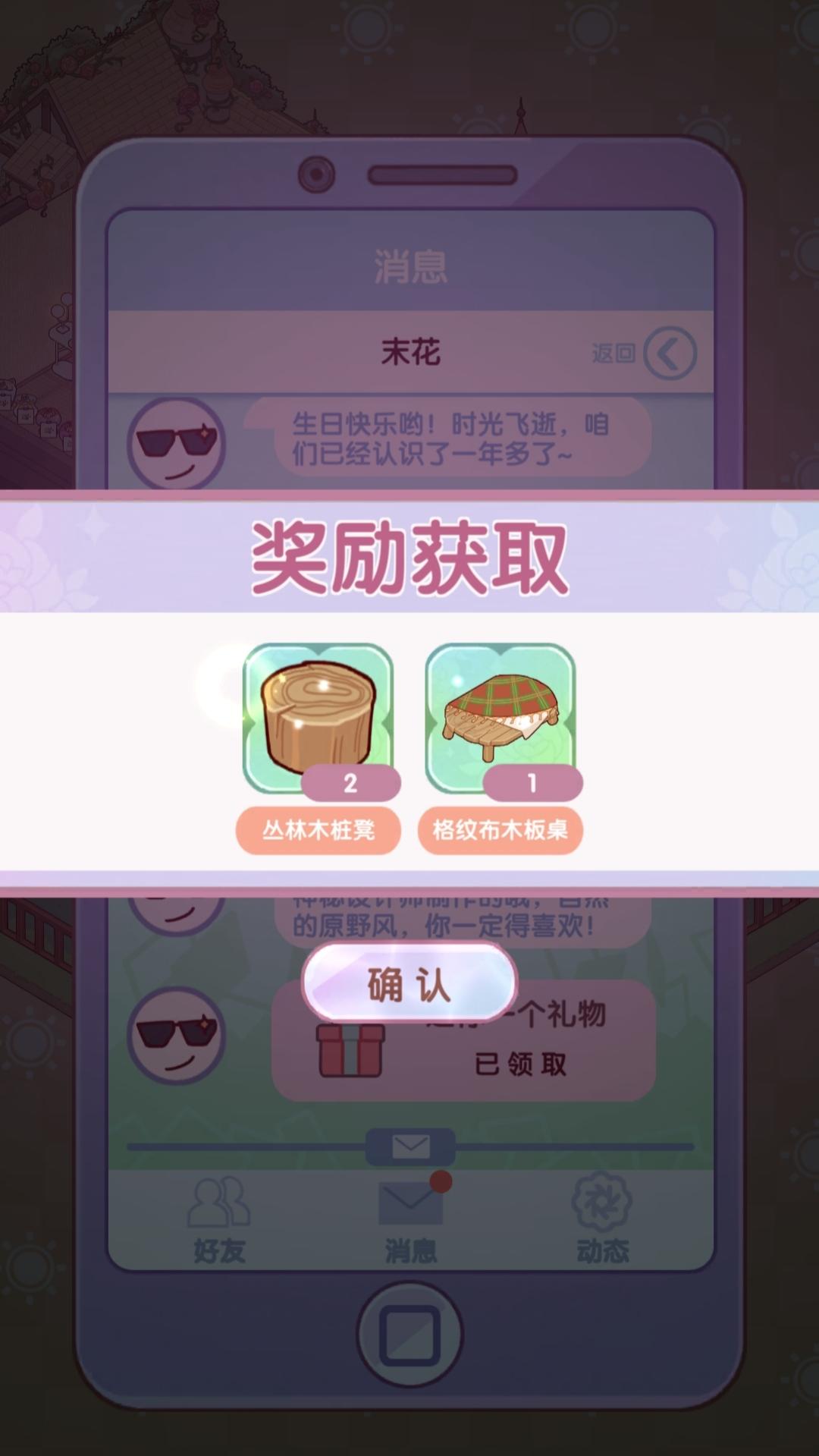 一年一度的生日礼物大家都领到了没有~聪明的宝子已经拿到全套啦!只要把生日改成当天的日期,然后再重启游戏就可以去小镇好友的对话框领取家具啦友情提示:如果没有激活所有小镇好友,请谨慎修改呢,后续激活的会不会给补生日礼物官方也没有具体说,所以为保险起见还是等激活所有小镇好友的对话通道再去领取啦#我的休闲时光