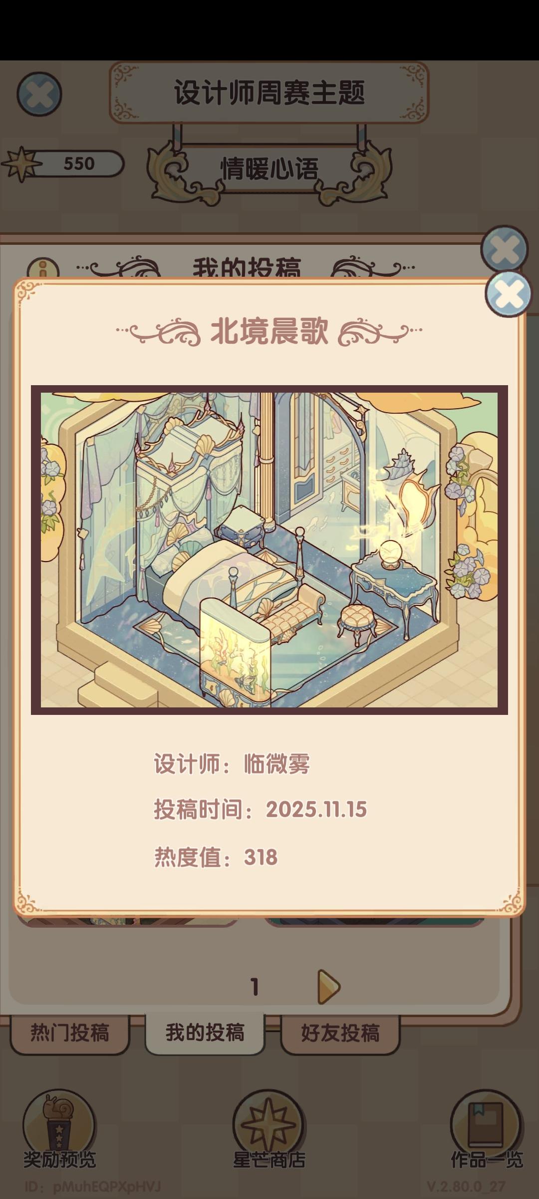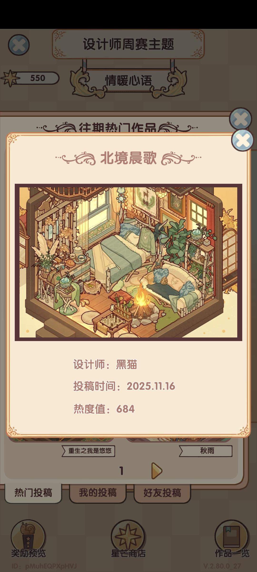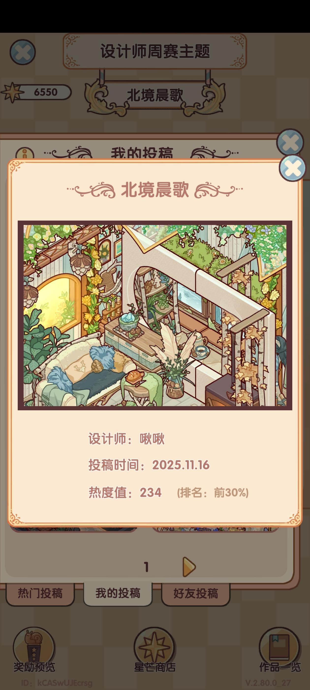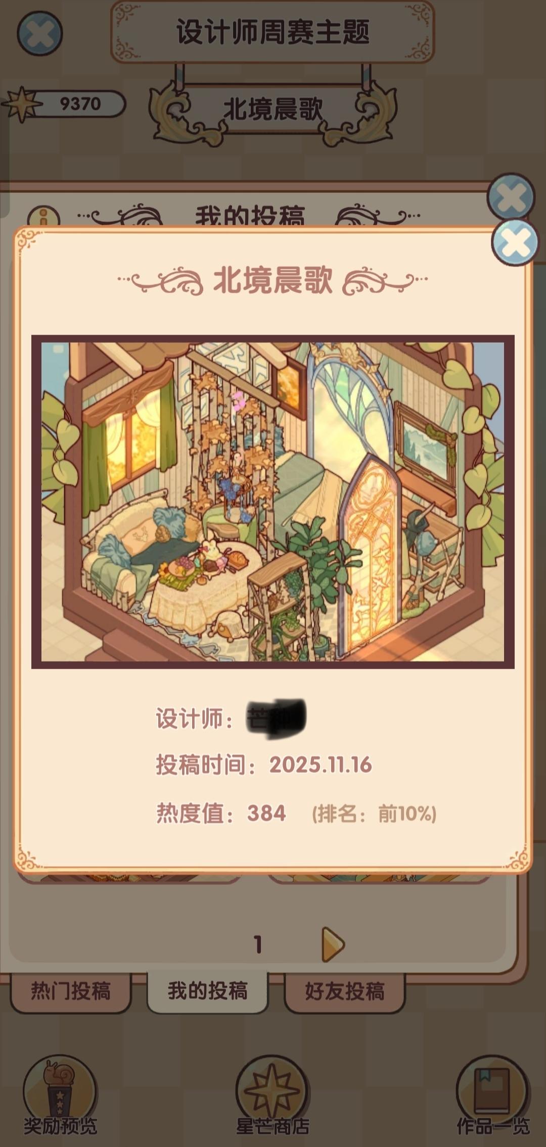 我我想问一下这个每次的这个。设计师周赛,投票真的没有黑幕吗?就拿这一周的投票主题。我在星期五那会儿登录查看我自己的作品,我作品的票数它显示的是300多票,然后显示的排名是前10%的,结果我领取的奖励却是前60%的,这个票数到底有没有黑幕啊?我真的很好奇,是不是说必须得抽了一整套的家具摆上去然后你才会给他热度什么的再看往期的往期的这个。热门是800多票,我拿了600票,我领的奖励依旧是前60%。我真