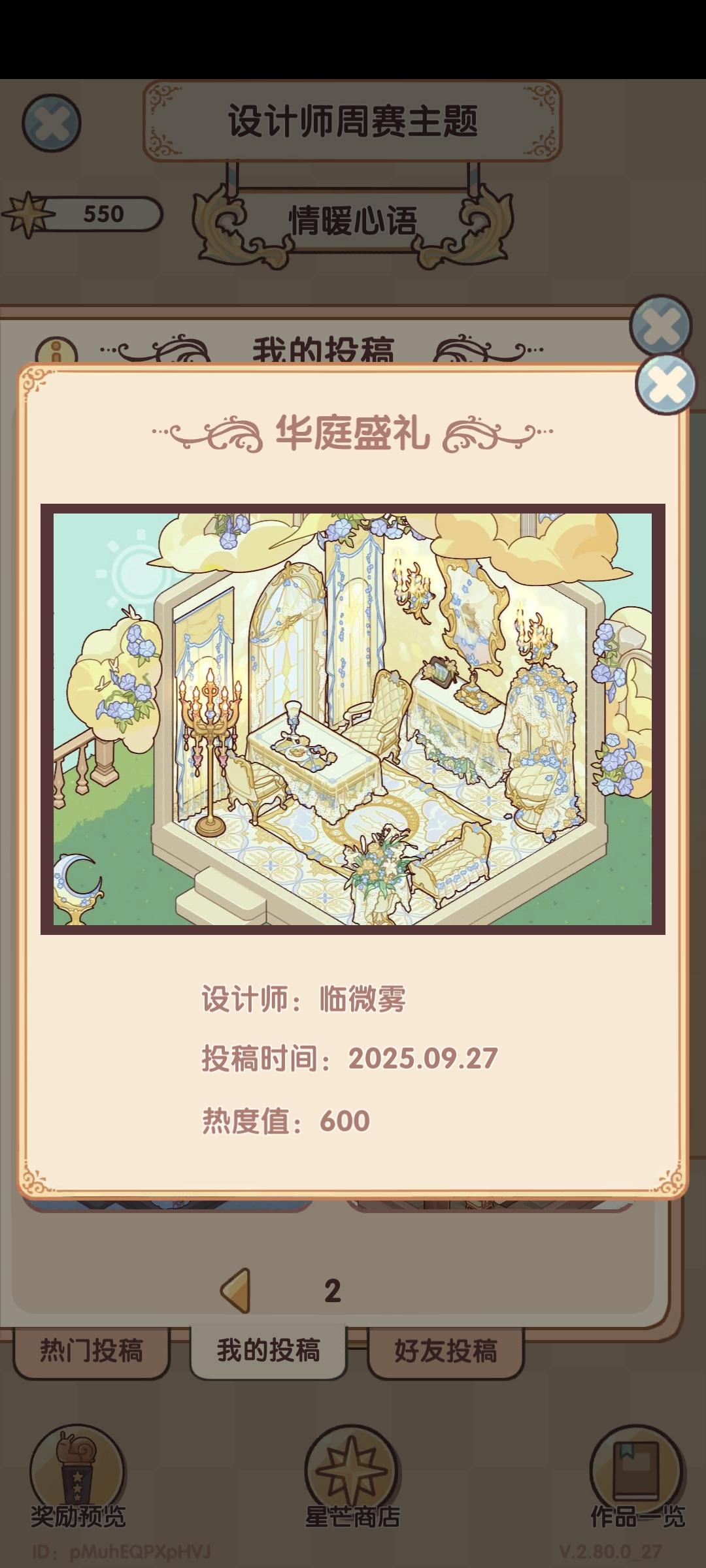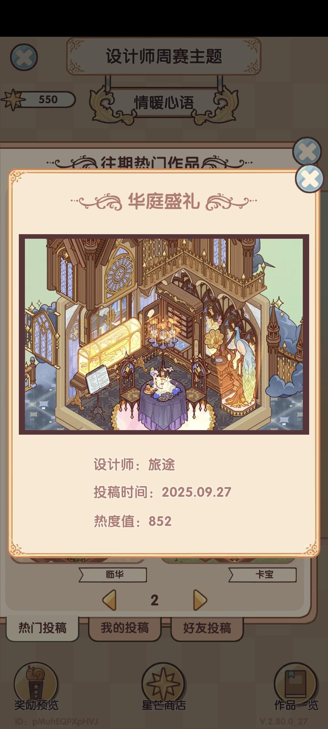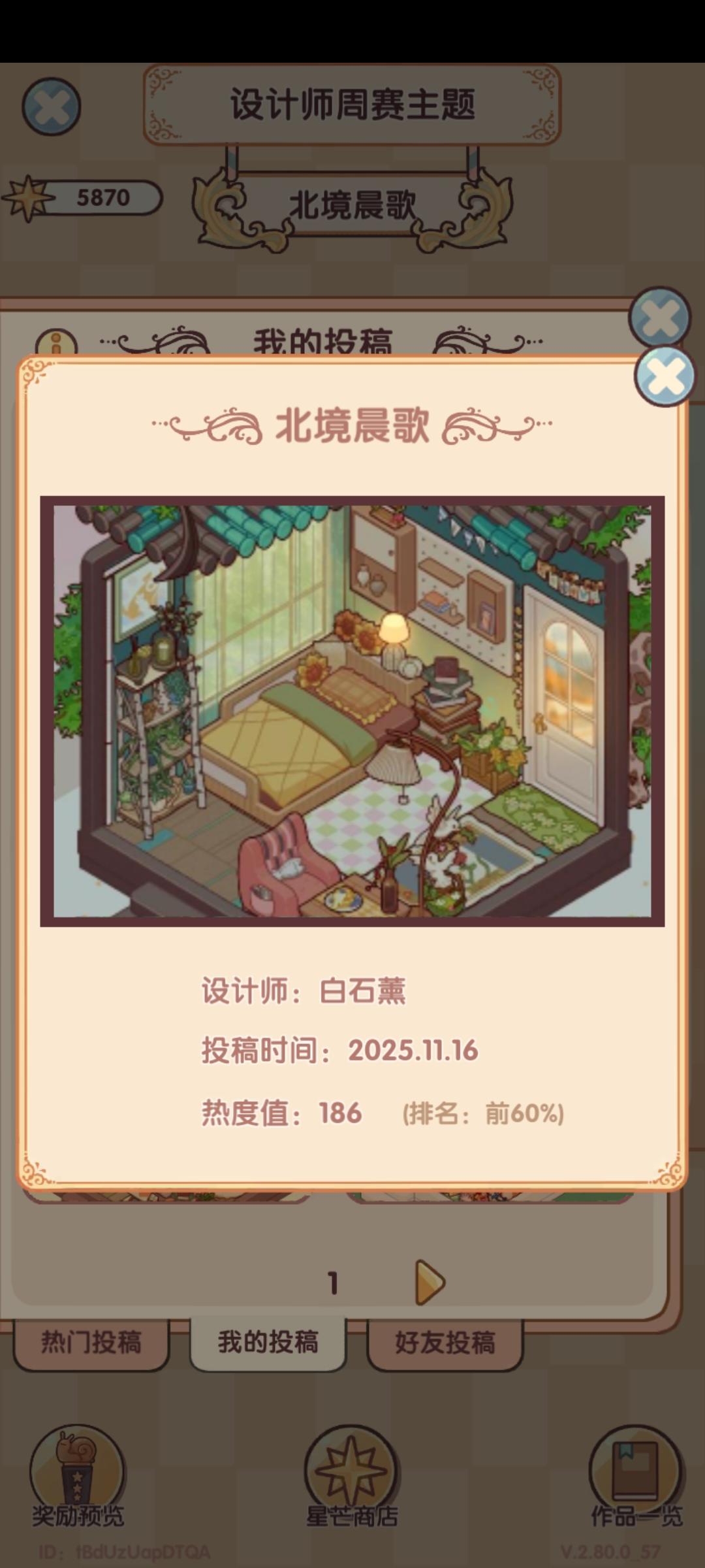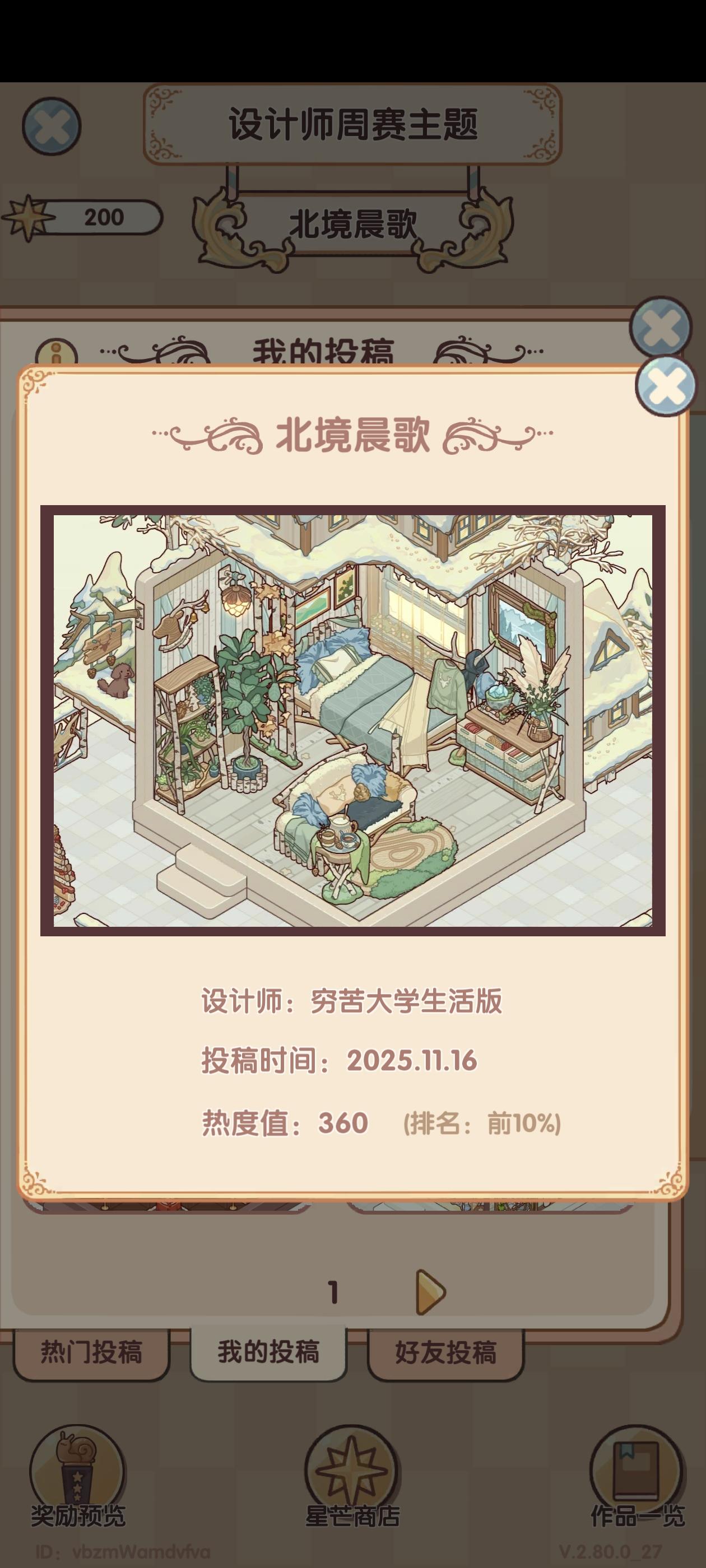 我我想问一下这个每次的这个。设计师周赛,投票真的没有黑幕吗?就拿这一周的投票主题。我在星期五那会儿登录查看我自己的作品,我作品的票数它显示的是300多票,然后显示的排名是前10%的,结果我领取的奖励却是前60%的,这个票数到底有没有黑幕啊?我真的很好奇,是不是说必须得抽了一整套的家具摆上去然后你才会给他热度什么的再看往期的往期的这个。热门是800多票,我拿了600票,我领的奖励依旧是前60%。我真