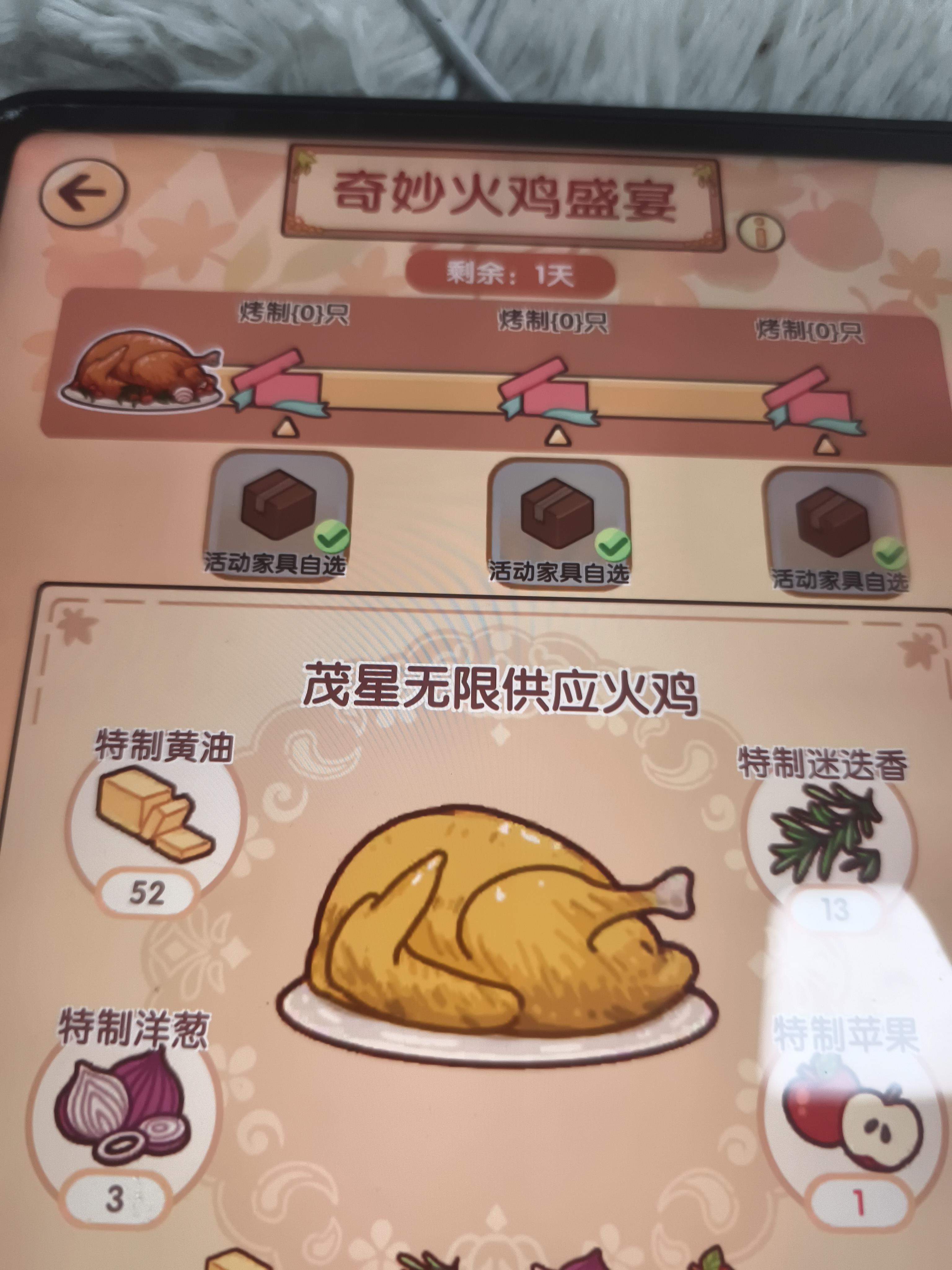 三个礼包 我后面一次做了五只烤鸡,按理说我应该抽三个箱子,为什么我点了一个箱子选了一个灯后,后面两个箱子也显示抽掉了?我最后自选礼包肯定这种家具我能拿六个,现在只有四个,蜗居蜗居怎么回事#我的休闲时光创作 #我的休闲时光吐槽 #我的休闲时光家具
