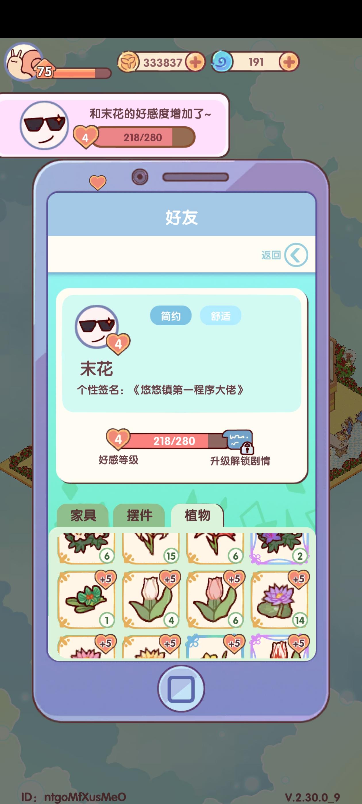 手机里面好友送礼,为什么不按数量来计好感度?送一个的好感度跟送两个甚至更多的好感度是一样的,这样很不合理#我的休闲时光 #我的休闲时光我的休闲时光 #我的休闲时光吐槽