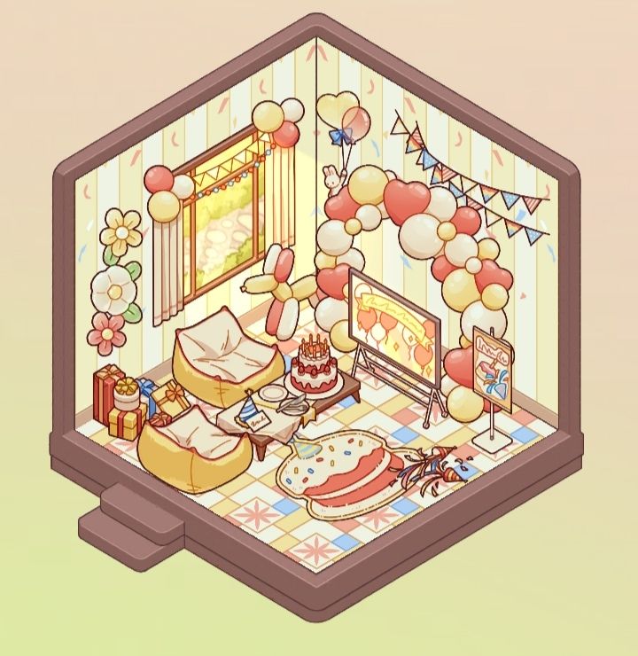 #我的休闲时光 #我的休闲时光蜗居物语 ✦翻图鉴的时候突然看到多了一个小套间,这个喜庆又可爱的套间还可以。二编:这个是2026年的生日礼物啦。✦图源:光子服图鉴