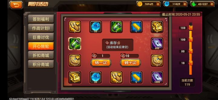 每天打怪掉落17个转轮抽奖券,7天一共得到119个。如果再多一个的话,你就可以用1500钻石在折扣商店里买30个转轮抽奖券,这样你就可以得到开心转轮的最后一个奖项-冷风散热。但是偏偏就少了一个转轮抽奖券,如果想拿到开心转轮的最后一个奖项,你就要在折扣商店里用2000钻石买40个转轮抽奖券才行,就因为少了一个转轮抽奖券就要多花500钻石,感觉就像吃了一只苍蝇那么难受,策划好恶心啊!
