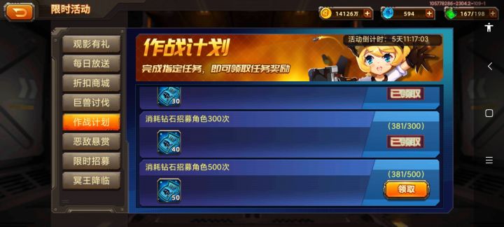 现在380抽,离500抽差120。周一商店兑换20。差100。折扣商店4800钻60抽。还有4000钻的40硬抽。每天工资5天1500+500+活动900+活动+600。这是3500。8800-3500等于5300缺口!