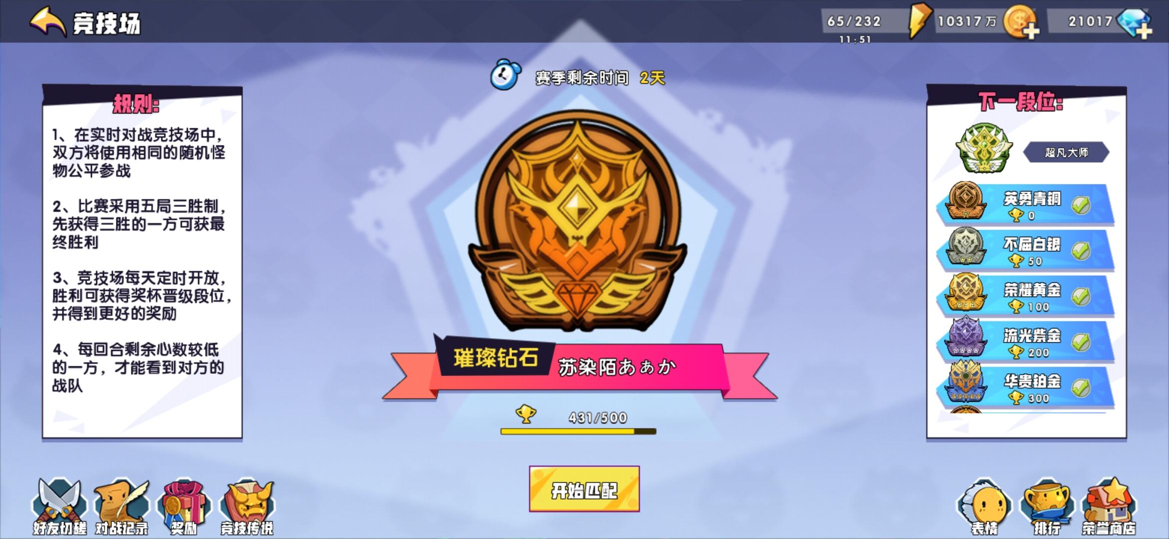 竞技场平局扣50分,如图,在钻石赢了三把积分应为475,一把平局直接扣了50分