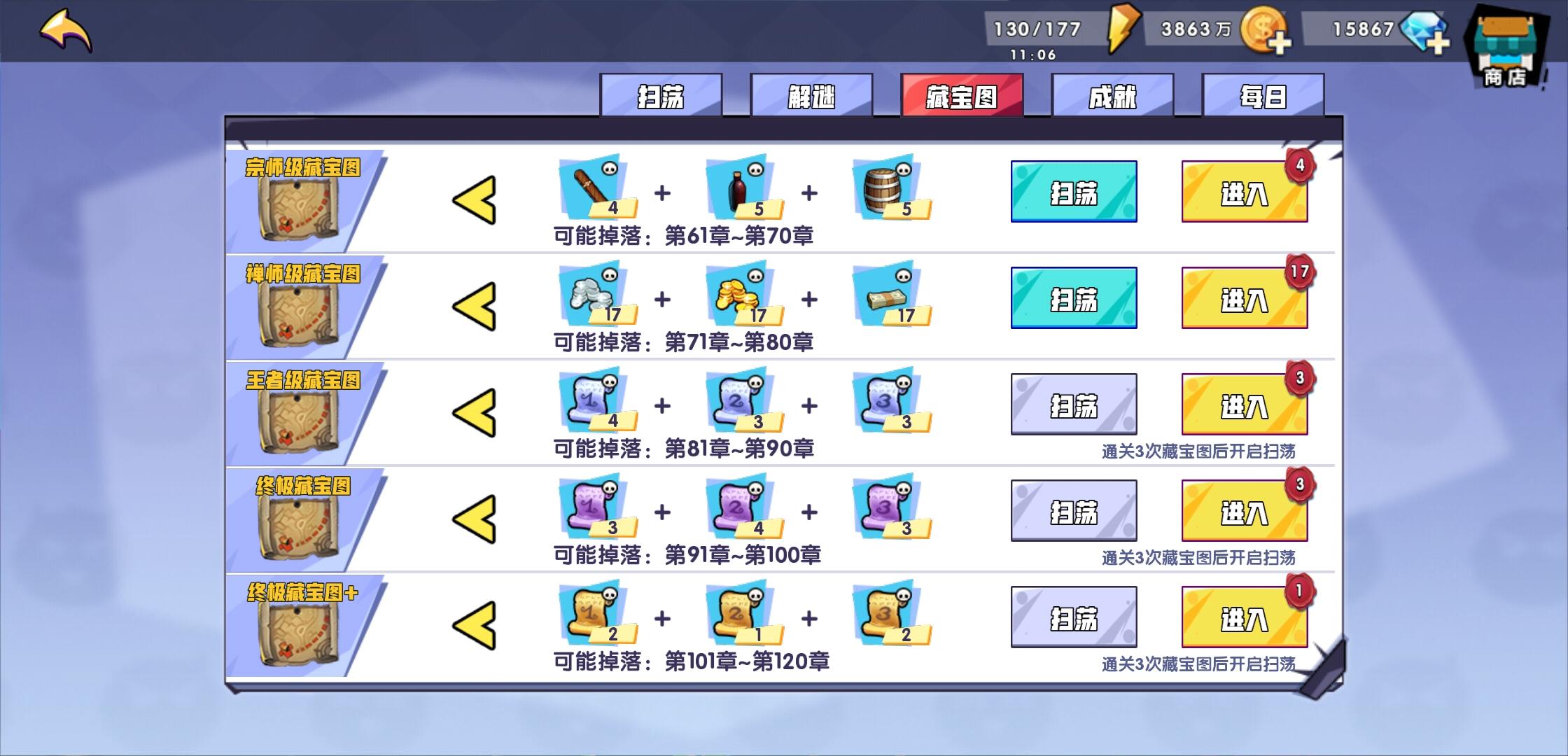 区服:安卓区名称:苏瑾。等级:159我的藏宝图存了一个月,每个藏宝图90+ 更新过后,藏宝图都木有了!!