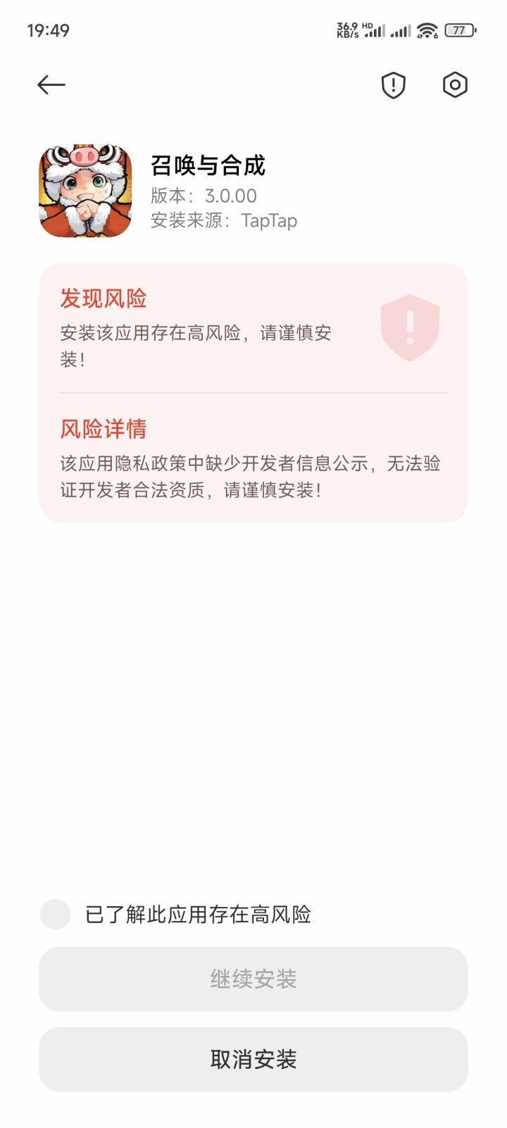 手机是小米14,系统澎湃os2,提示高风险应用,怎么回事,召合2也不这样啊
