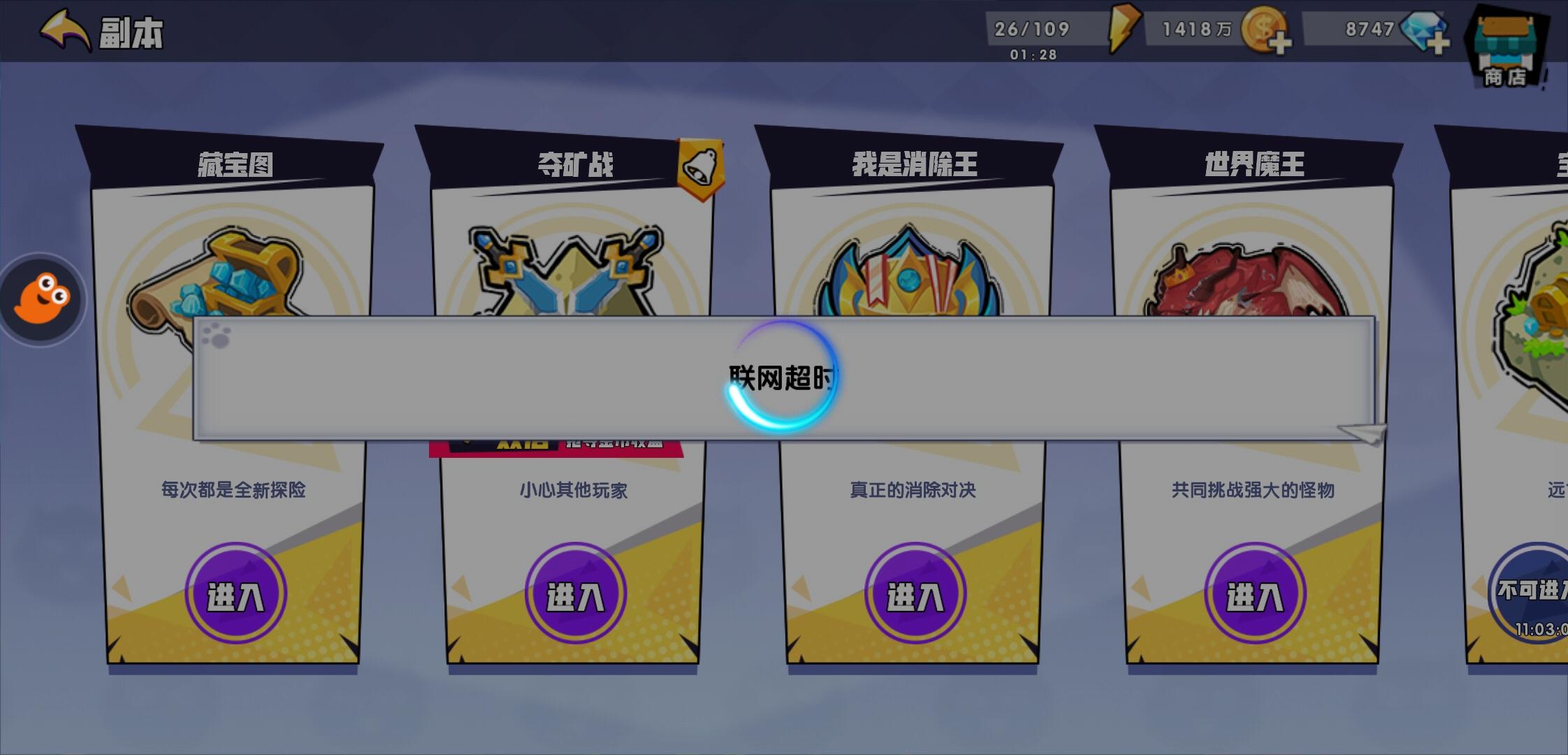 第N次,宝藏岛闪退了,无语了。既然IOS闪退不好修复,没关系,宝藏岛能不能改成跟普通冒险关卡一样,能再进啊?
