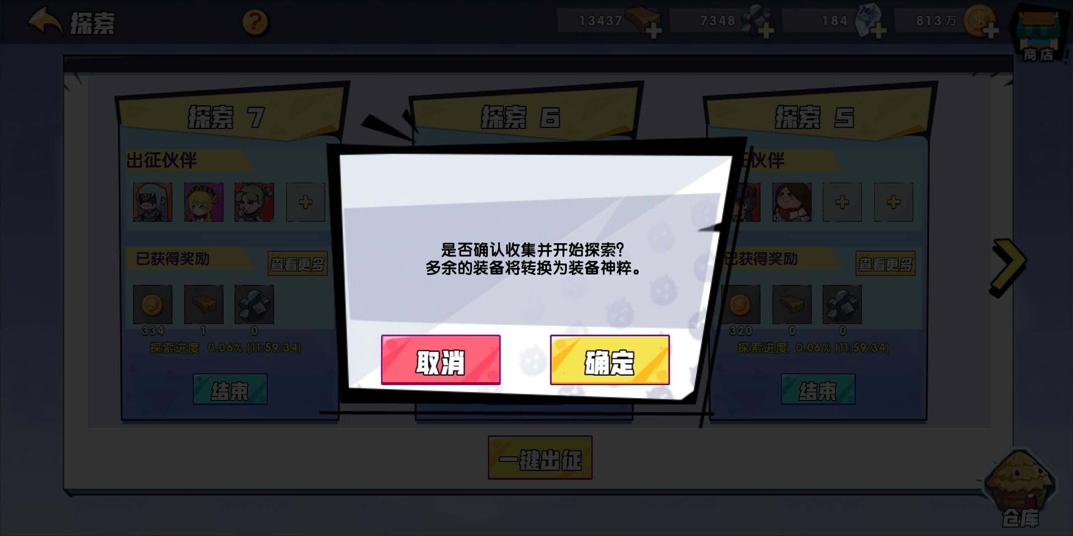 八点之前打了一次秘境 打秘境之前看到探索进度百分之九十多了 就差不到半小时了 然后来了酒吧 召合就在后台运行 过了一会看手机 就直接点了一键出征 然后没有出图一那样的画面 一般都会出 但是当时没注意 然后所有的进度都没了 成了收益百分比并没有出征 又点了一次才可以 看了一下钱发现没有变 装备也没有多 哇 心疼呀 好多小时就白费了 客服可以解决一下吗?