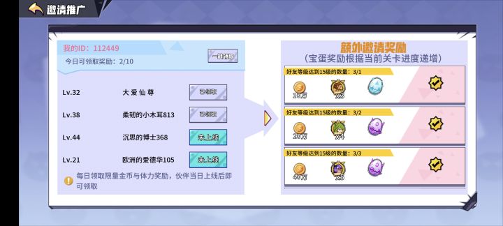 第16天,我这法强应该算比较低的,技术很菜,简单说一下我的打法阵容鸡猫爆炒,每个岛置换拖一个紫鸡或橙鸡靠前6s猫法强加成基本能打掉小怪大部分血量,关底boss1000级鸟有1w5魔防,我合成比较辣鸡只有+51的鸡,打不动,试了好几遍都不行,最后借鉴了一下思路爆炒换绵羊,喂了很多熟练度把近反开到16,开大无限吸伤害勉强把鸟反死,剩下盾和射手打不过鸡就过了,希望对大家有点帮助顺便发下邀请码1174