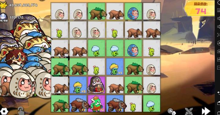 5.消除盘中左上角的石头打掉之后会有提升10级和1个形态的狗🐶,记得一定要提前留一个紫色怪不要拖出去,看到狗出来后就把紫色怪拖到狗的右边就会有个橙色怪啦!我自己就要了个橙鸡,这个可以根据个人需要置换成其他怪。