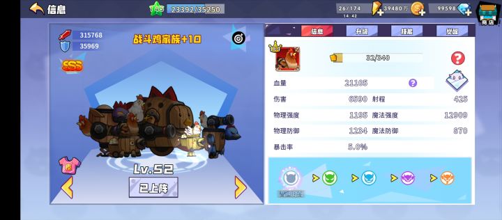 总结:六子狸猫yyds(可惜我升级了)精英110关底怪物阵容和普通120一样,都是886+爆炒+1w4魔防的雷人鸟通关阵容:六子狸猫+喵斯特+锤子,主力射手在前面关卡拉了4只橙鸡。第一轮 鸡锤各1个大招保护伙伴不死,同时注意不要拉出喵斯特第二轮 可以吃喵斯特增益后,鸡开大带走886,剩下的2只紫狸猫就够反死雷人鸟和爆炒通关要求:白鸡魔攻1w5 物攻1w3。这样的配置能一路很轻松从精英1