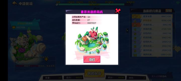 第一次120丢卷轴通关,重新进图你会看到一个跳BOSS岛需要的战力,我刷新的最低战力为36Y最高为118亿好像第一步刷一个低战力BOSS岛。且消除两绿方便后面遇到难关换橙鸡。第二存两个等级高一点家族方便拉橙鸡救场,因为已知BOSS关战力很低不需要考虑BOSS关。钥匙关能打过BOSS关就必过,我当时的配置大约是1个加30和一个加50橙🐔在最后两个钥匙关就全部脱出来用了BOSS关就一个加10左右的橙