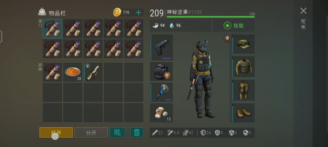 难得刷到一次还有空遇到了,带了35把斧头,获得了36组零6个橡木,726个,平均每把斧头砍伐20.74个橡木,每次图消耗2把斧头多一点#地球末日生存游戏日常