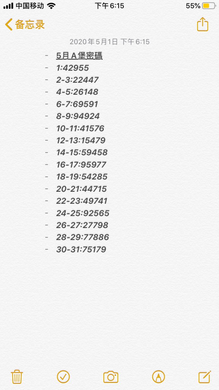 五月A堡密码(自己发一个,你们发的图片看着太累!)