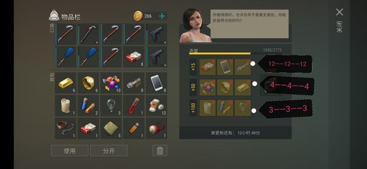 道具:军装一套,满耐久手枪一把,绷带1~2 组,2级斧头一把,这个图有岑木,不想砍也可以不带。进图查理叫你跟着他猫着,你就猫着跟在他屁股后面,他会带你找到首领,杀死首领后全图小弟跑来找你报仇,调自动突突就行了,注意控血,难度不大,也就跟摩托车聚会差不多屠杀结束得衣服3套(衣服都是半耐久,帽子我没拿,除了衣服其它是我带的)图上有岑木木和橡木