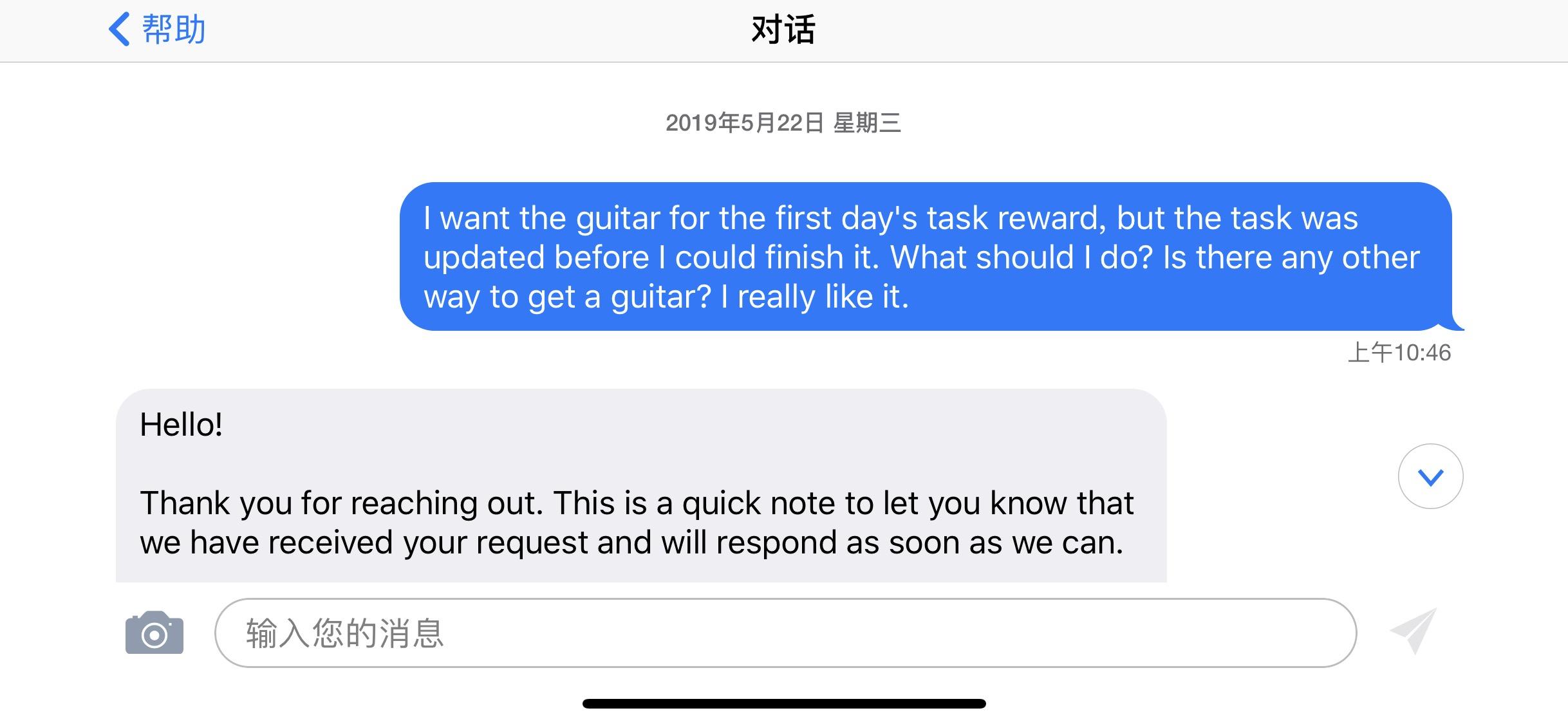 昨天半夜更新得,更新完看了一下任务就睡了,然后今天任务就更新了,吉他就没了…客服官方答复: