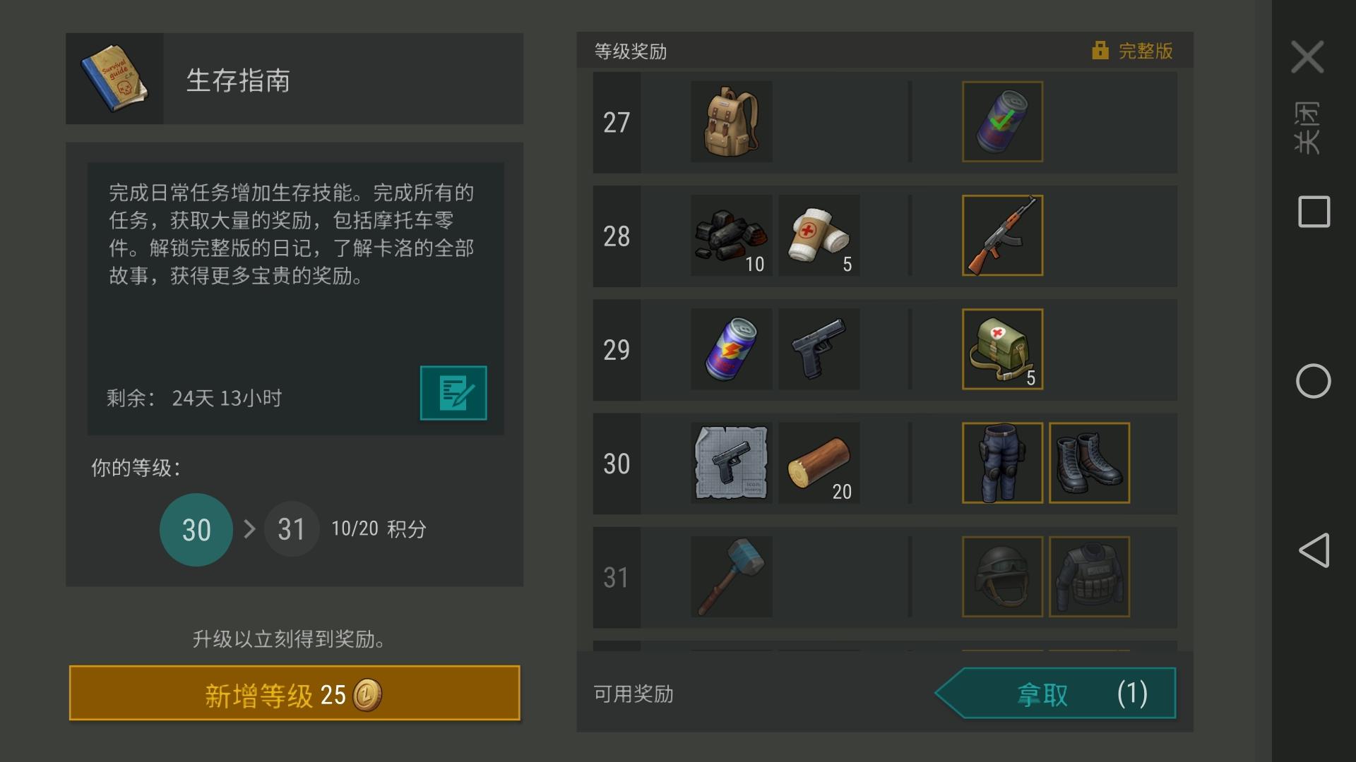 求论坛大佬帮助解决啊,如图,新手指南里面27级的能量饮料已经领取了,可背包不知道怎么就没有领取,导致整个后面的奖励全都因为这个背包而领取不了,点拿取也没有反应,求助!