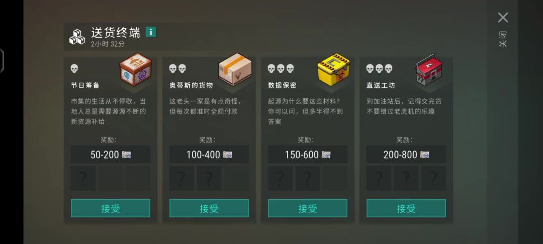 送货有奖励和惩罚。 主要是分享避免惩罚奖励最大化!奖励有2种声望和物品。声望有2档,当前送货价值10%或者20%。(比如当前800,奖励就是80和160这2种)。 现在开始说说声望最大化的获取! 货品分为4档。①②③④。先送①②与后送①②触发的奖惩不一样。 昨天送货举例:先送③④会触发6次惩罚!但是先送①②期间有奖有惩,奖励拿了惩罚可以绕过。再送③④居然触发了6次奖励!如视频里的! 今天的送货先送