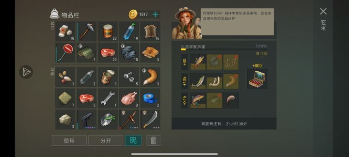 开题,昨天没怎么打,加上武器锻造的弓和矛,只打了5级左右,今天锻造了刀和矛,成果如下昨天剩的鹿皮比较多,所以今天没打,相对应的,今天狼皮比较多,所以是一个持平的状态。成果如图。
