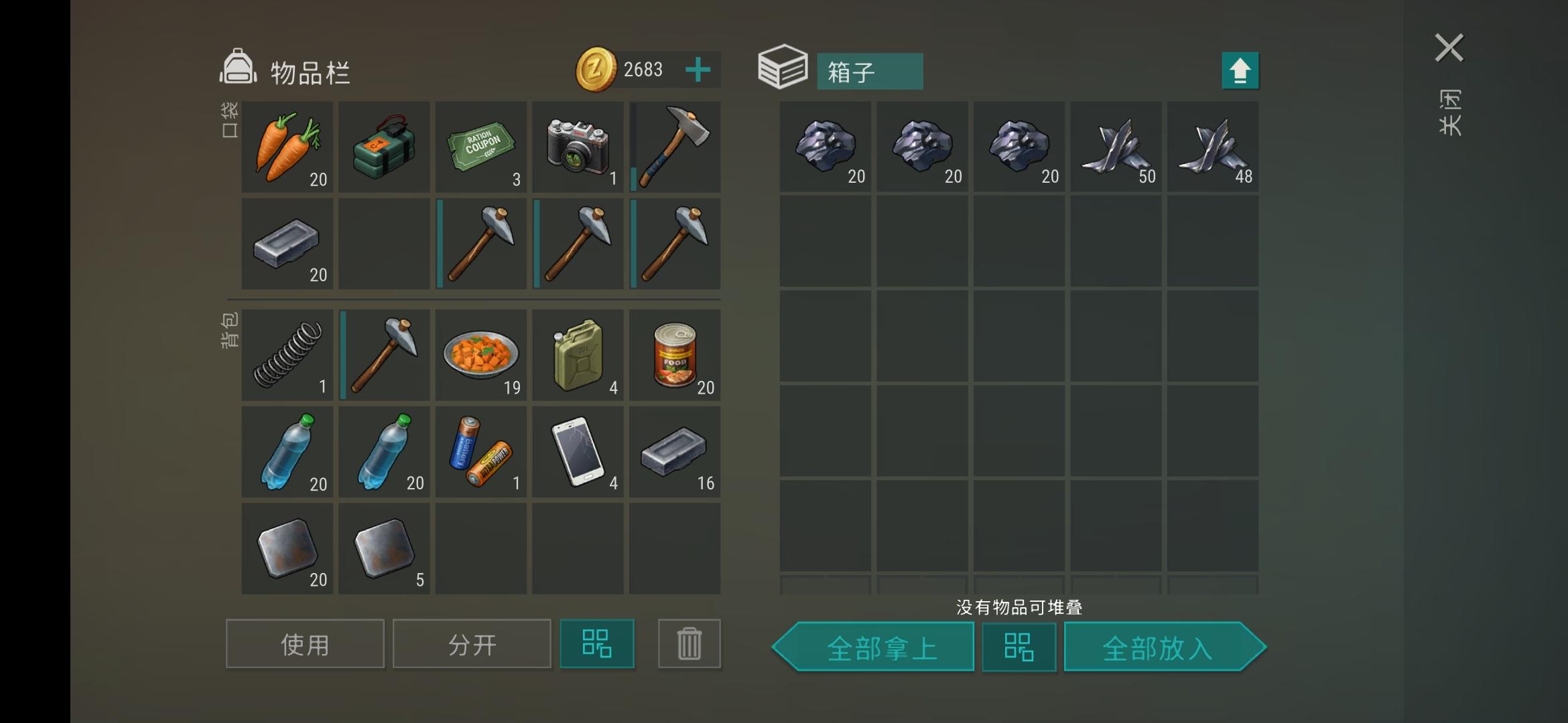 下边工作台打掉就能进,带8-9个石斧就行,箱子会出石斧铁斧,基本每个箱子都有木板。进门三个箱子没打开,其他箱子总收益:1组白药,27组+14木板,2组浆果茶,6油桶,石砖杂物等#地球末日生存 #地球末日生存抄家