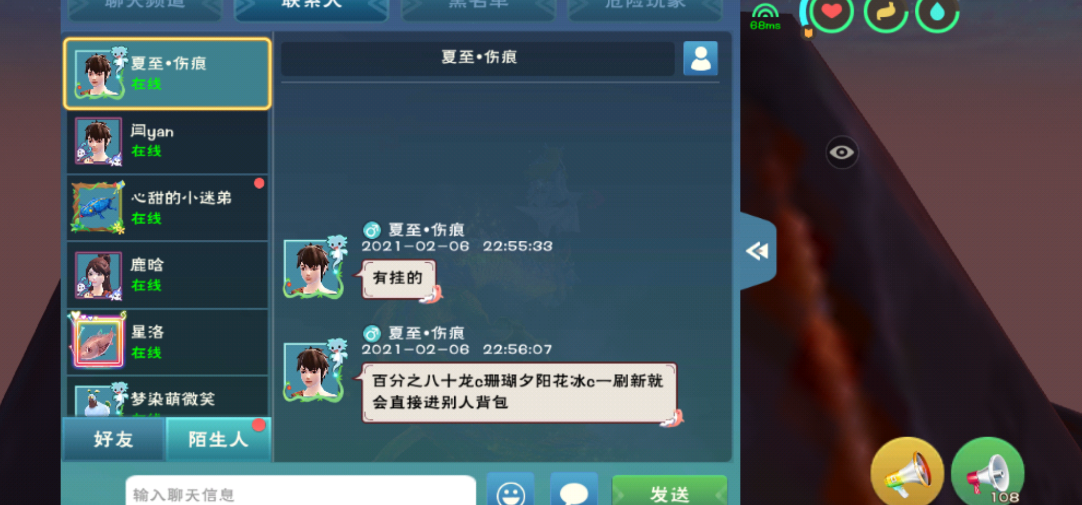 聊天页面半透明,动不了。人在空岛遗迹15层