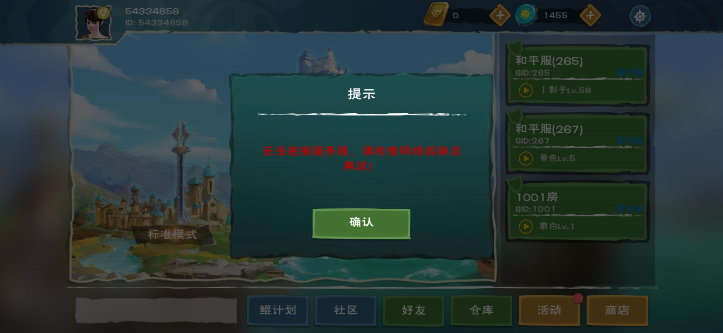 我也是无语了,都不知道什么情况,玩着就掉线了,然后就怎么都进不去了265区