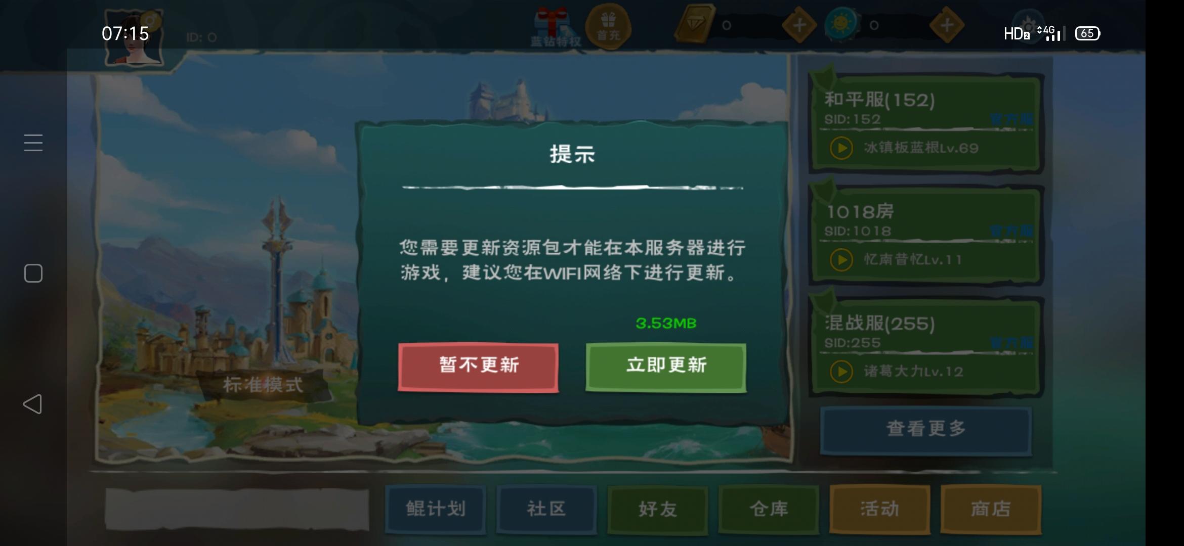 什么垃圾服务器,进一次更一次。进了还经常闪退,游戏系统几年时间都没完善吗?