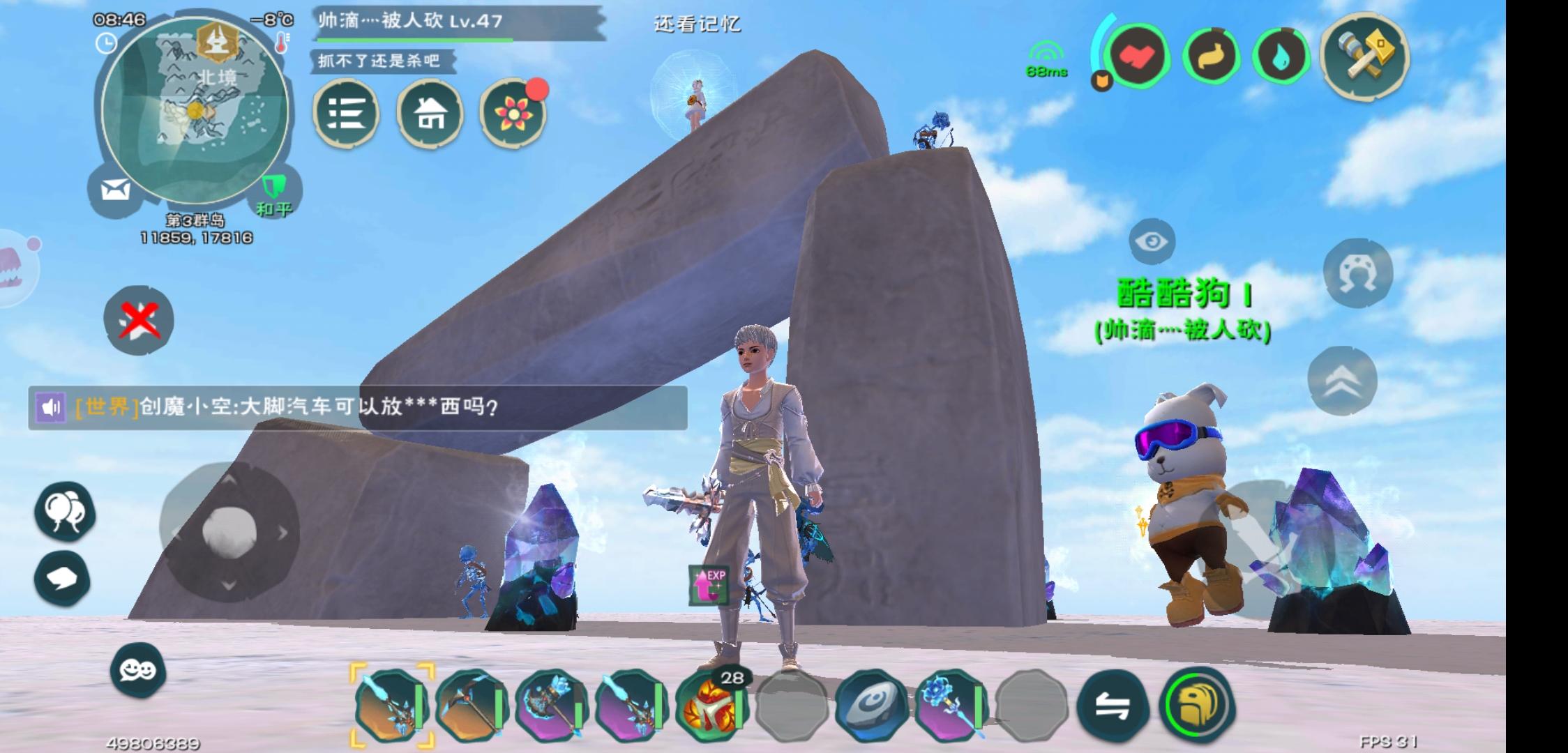 我压着时间去开箱子,这个人会走着走着倒着走,然后转过来参着空气捶几下……然后……有个箱子出来了,我也去捶箱子,他几拳箱子就爆了……名字是这个……@小创