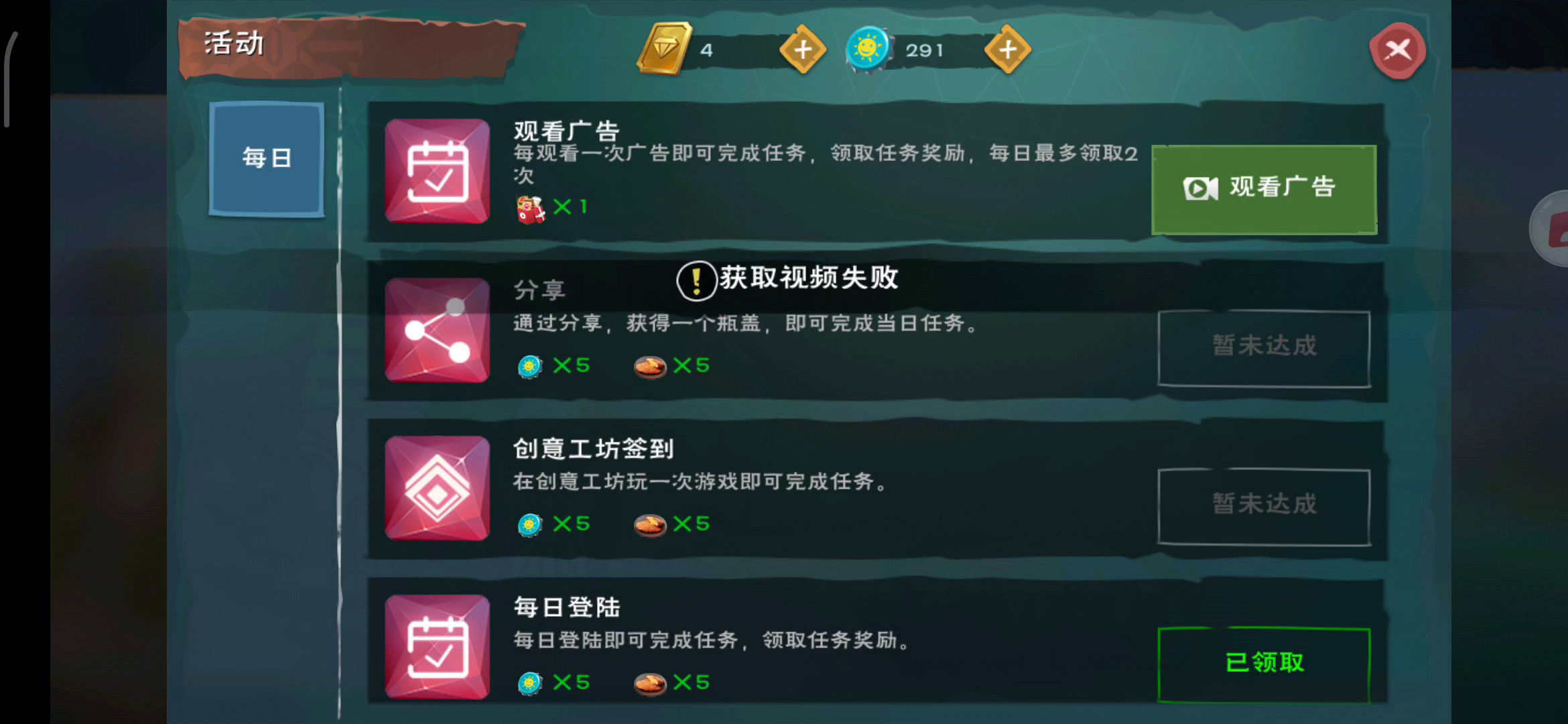 小创为什么我新下的其他版本创魔不能看广告给礼包