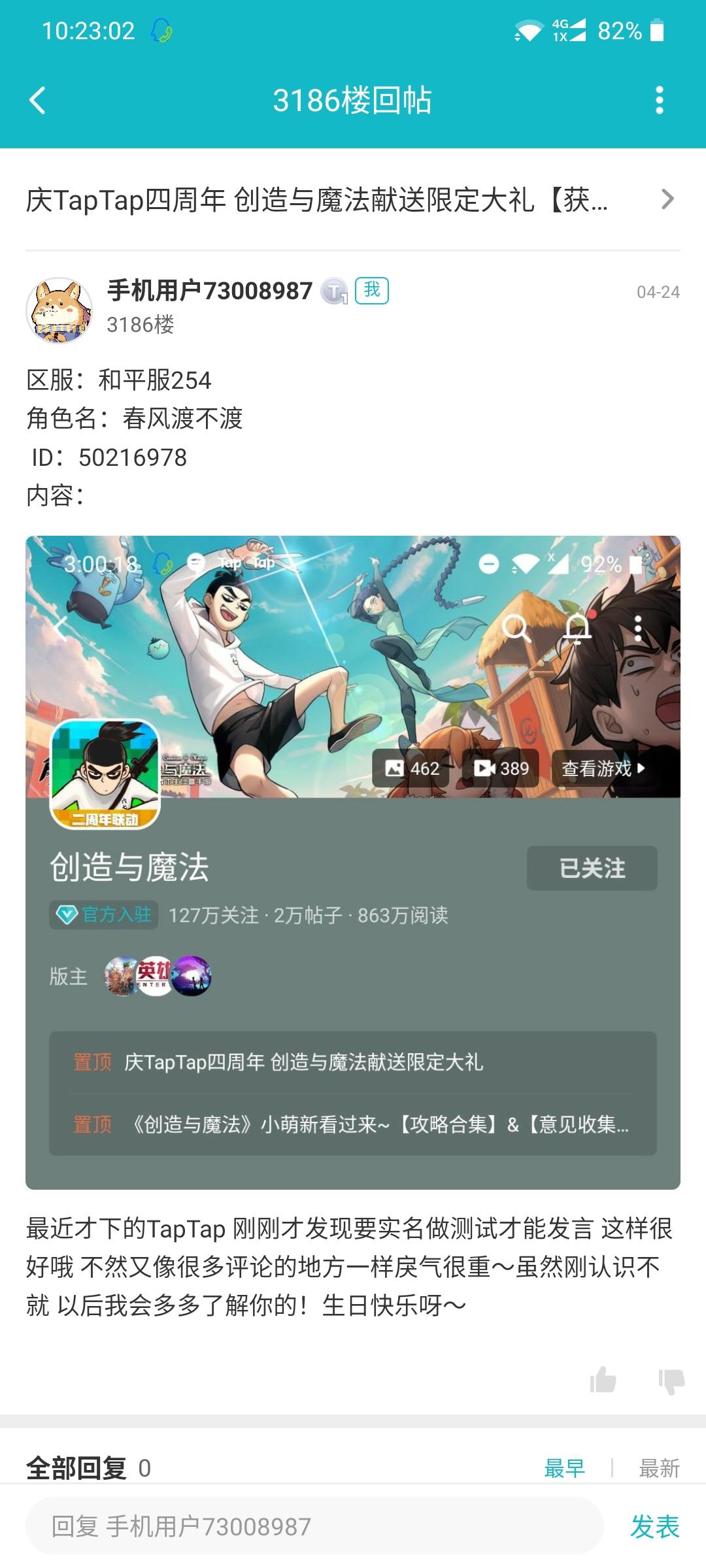 我在4月6日回帖了啊,为什么没有收到4周年的棒子