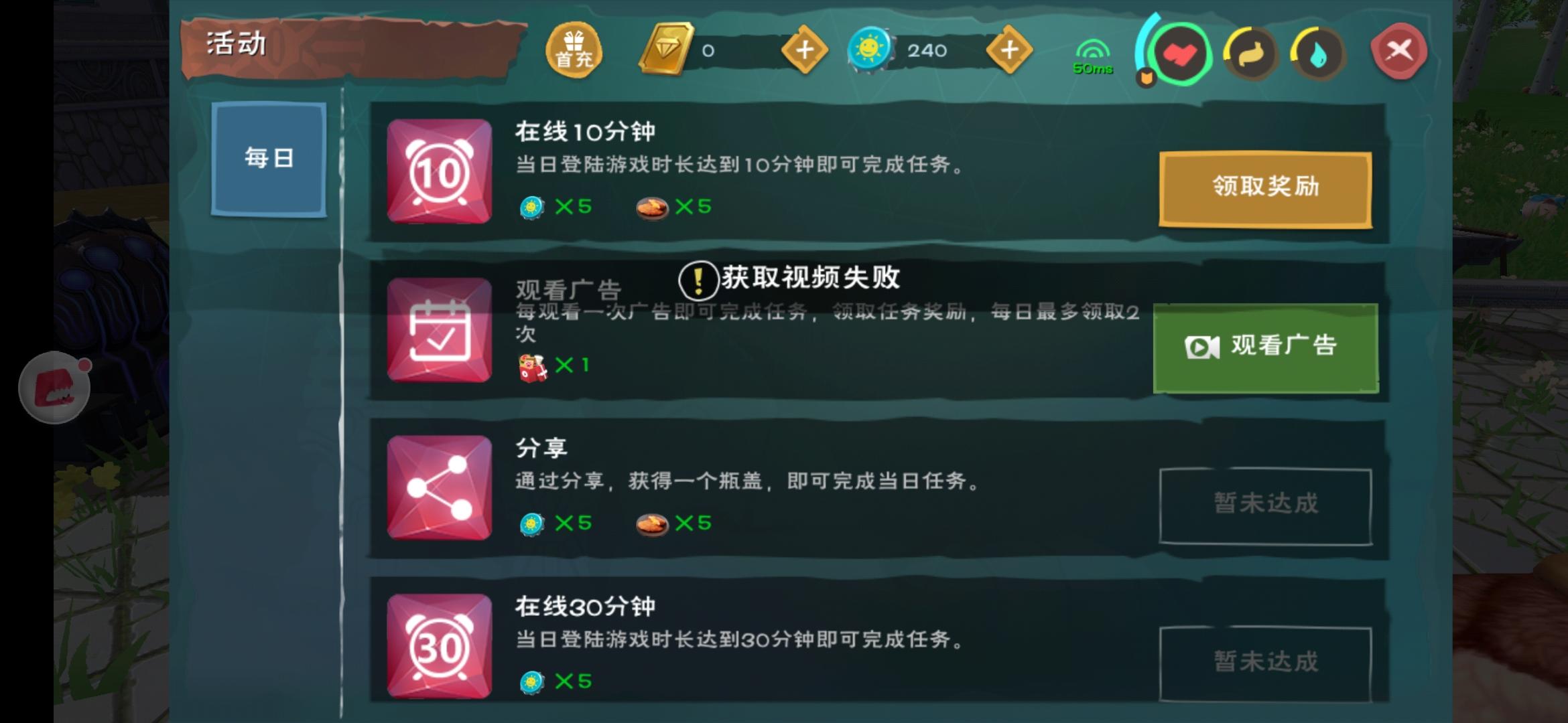 不能领广告礼包,获取视频失败。