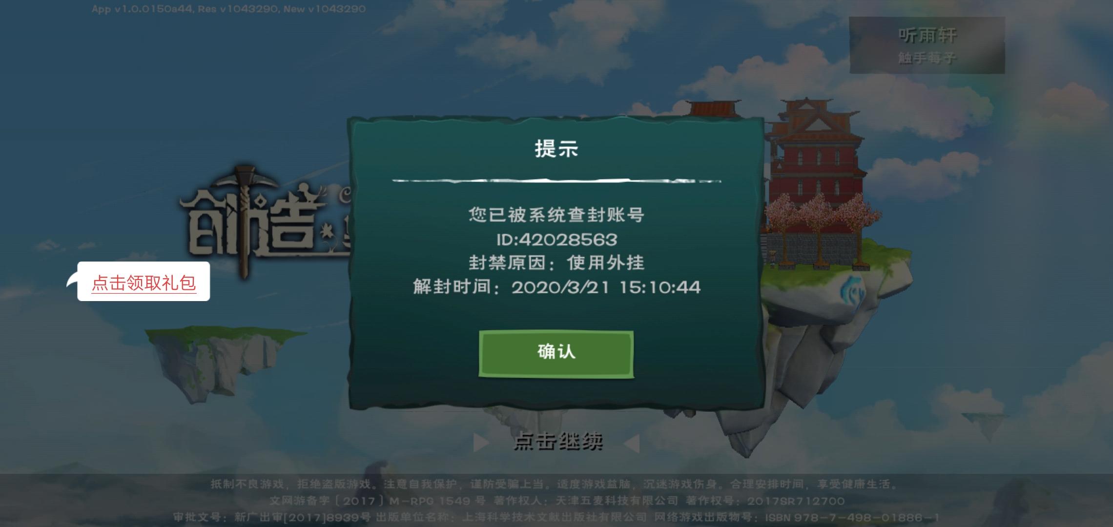 这是申请白名单后我第一次用模拟器登录,结果正在钓鱼钓着钓着就给我封了??