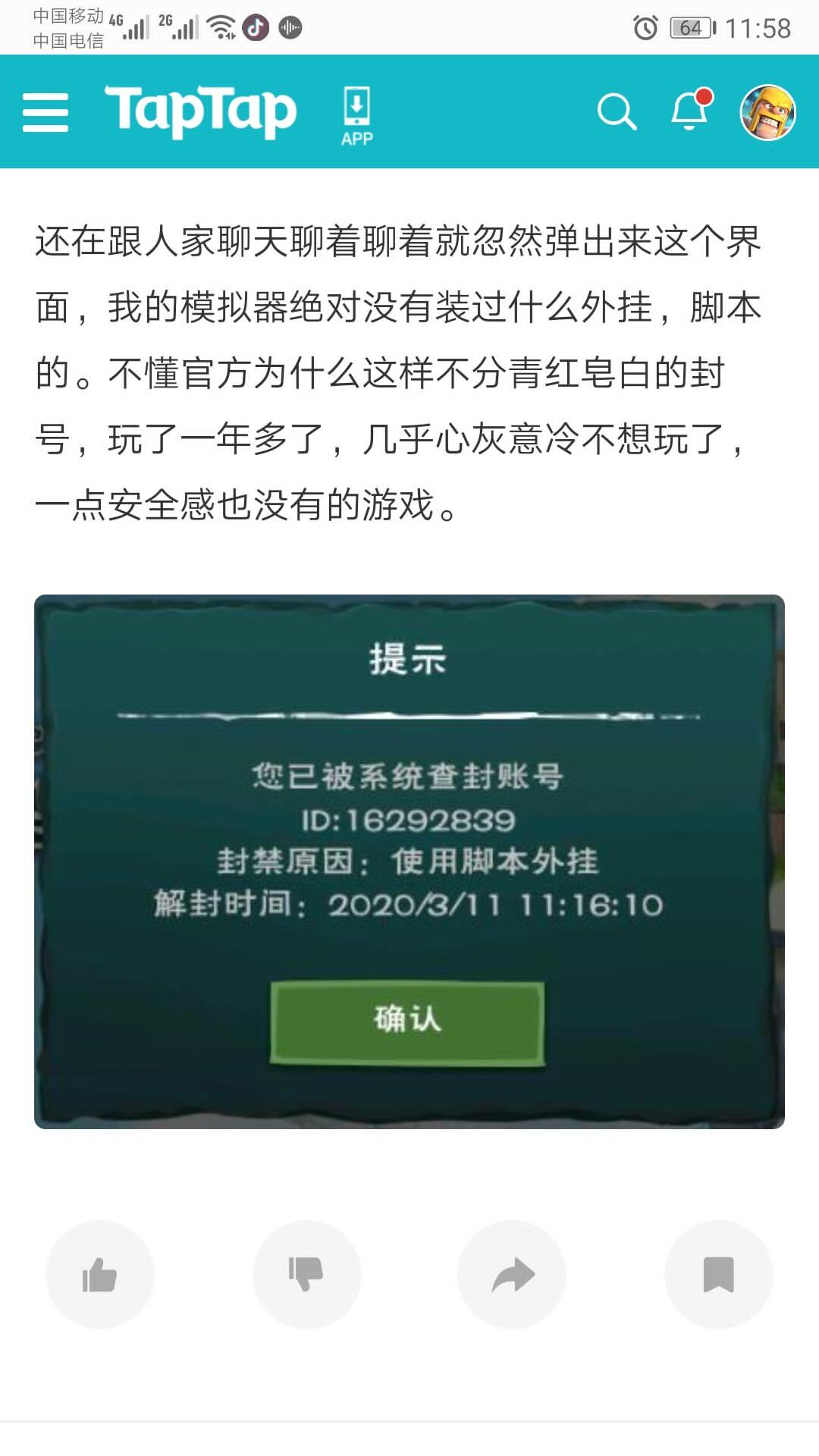 模拟器被封+1,难得用一次模拟器,还就被封了,也太难受了吧,下次要封之前提前说一下哪些会封好嘛,说了,我就不用模拟器了,最起码我知道把模拟器默认打开的root关了😭